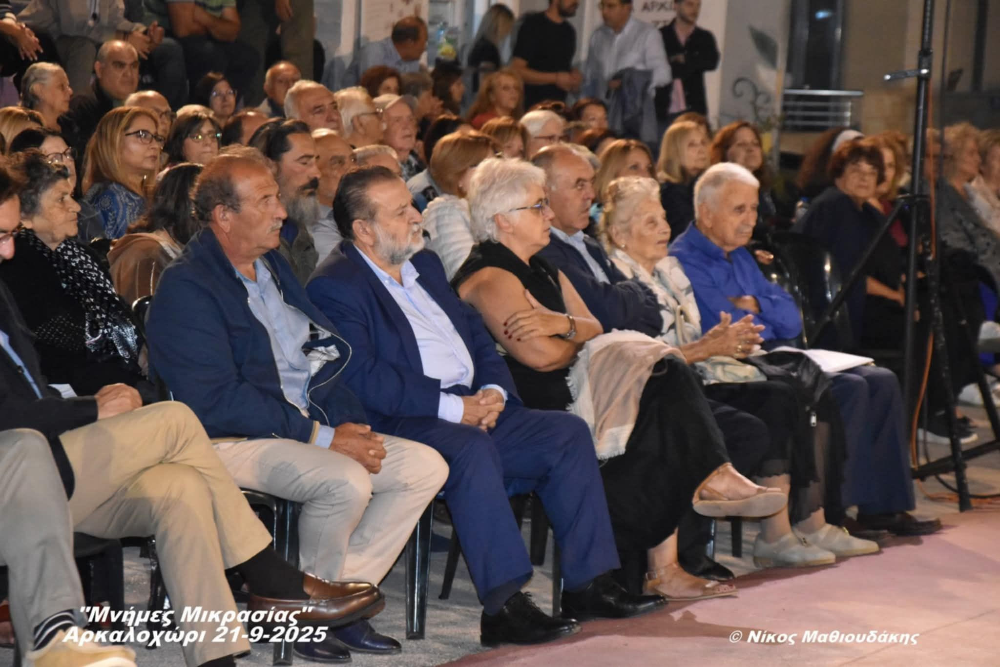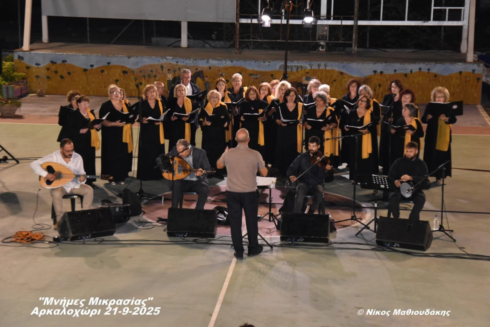 Παρουσία πλήθους κόσμου και μέσα σε κλίμα συγκίνησης, πραγματοποιήθηκε την Κυριακή 21 Σεπτεμβρίου 2025, στο Ανοιχτό Γήπεδο Μπάσκετ Αρκαλοχωρίου, η εκδήλωση «Μνήμες Μικρασίας».