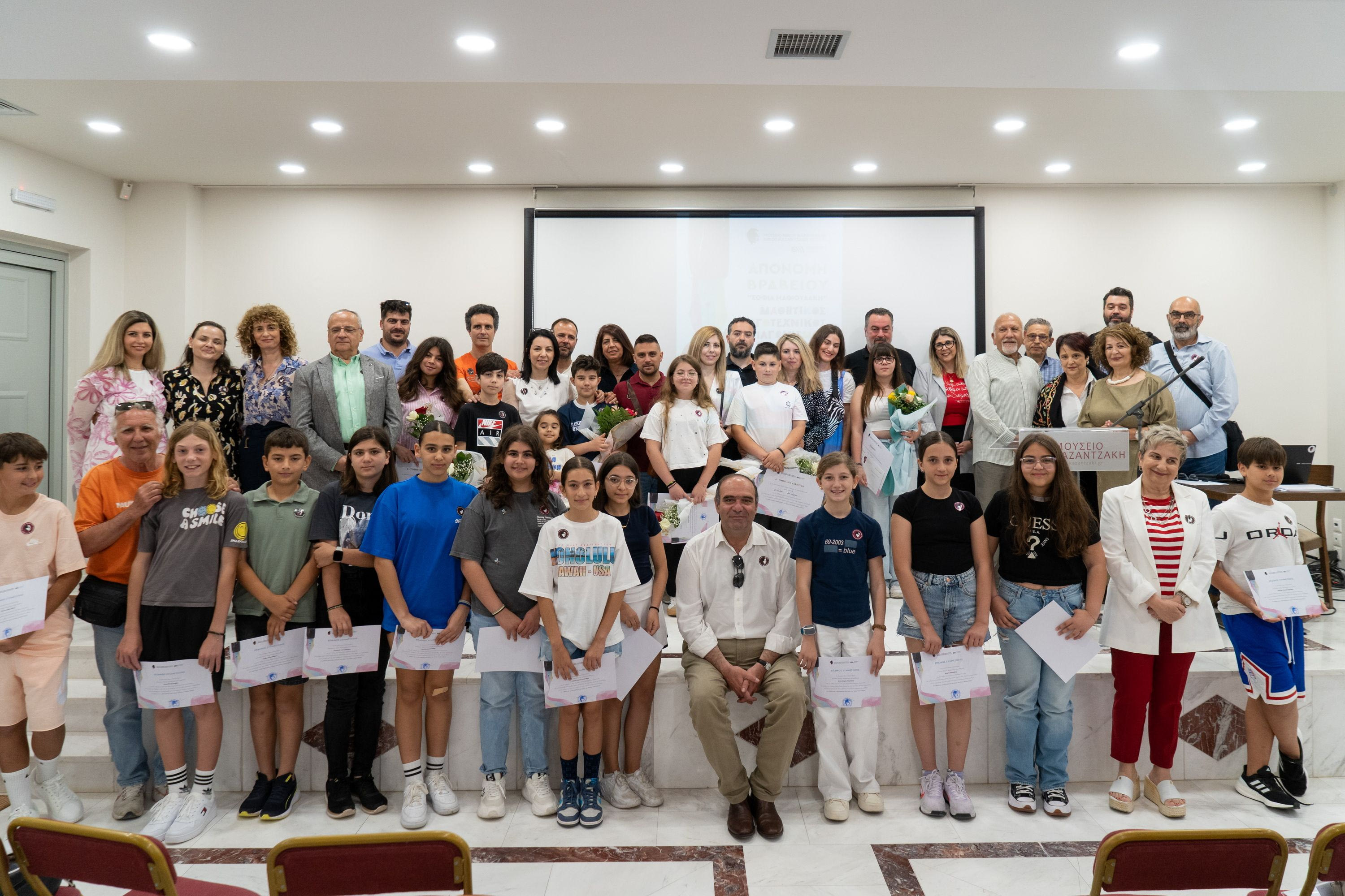 Το Βραβείο «Μαρία-Σοφία Μαθιουδάκη» για τον μαθητικό λογοτεχνικό διαγωνισμό έλαβαν ο Κωνσταντίνος Αντωνακάκης, μαθητής του 6ου και 44ου Δημ. Σχολείου Ηρακλείου και η Χριστίνα Σκαντζουράκη, μαθήτρια του Δημοτικού σχολείου της Μυρτιάς. Τα βραβεία που συνοδεύονται από χρηματικό έπαθλο, απένειμε ο Πρόεδρος του Μουσείου κ. Ανδρέας Μεταξάς.