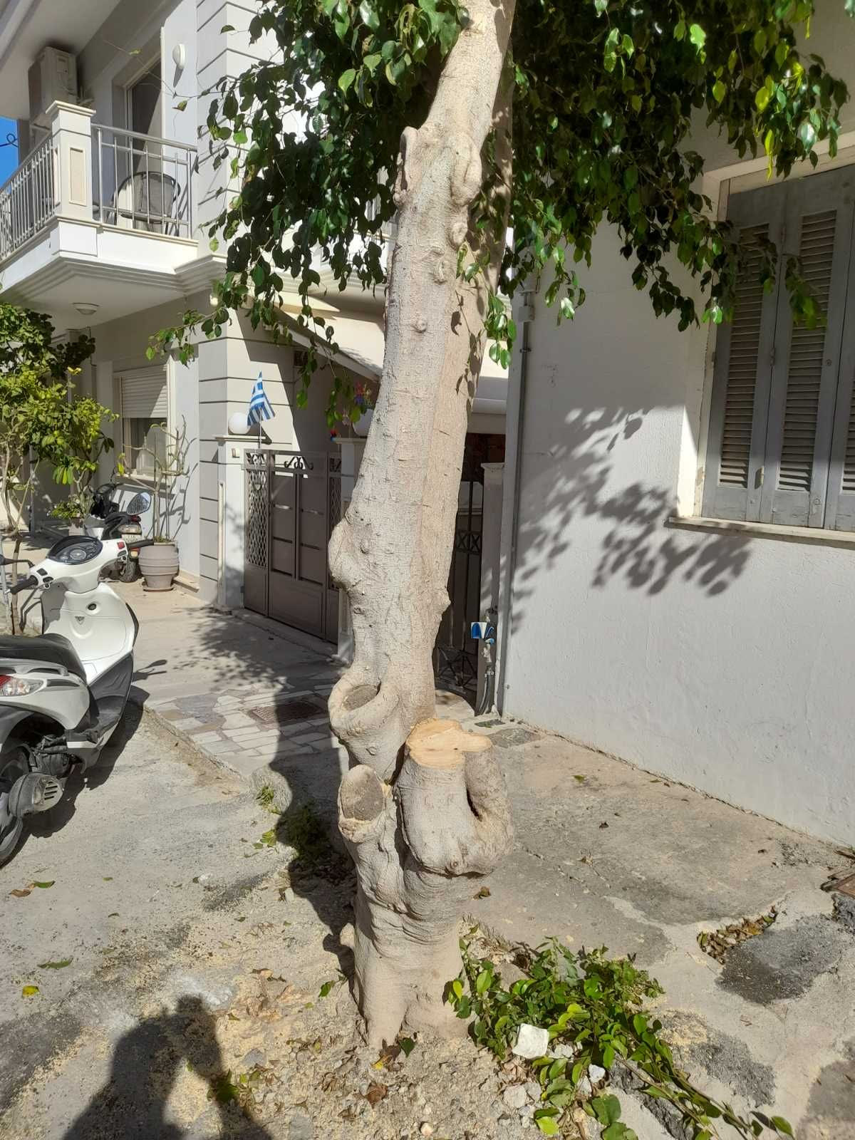 Ο εργολάβος, αντί να χρησιμοποιήσει μικρότερα μηχανήματα και προσωπικό, αποφάσισε ότι τα δέντρα είναι άχρηστα και μπορεί να τα κόψει χωρίς καμία συνέπεια. Η κοπή είναι σε εξέλιξη και οι κάτοικοι είναι στα κάγκελα! Συγκεκριμένα, ειδοποιήθηκε η Υπηρεσία Πρασίνου, η Δημοτική Αστυνομία και η Τεχνική Υπηρεσία. Κανένας δεν έστειλεν κάποιον να δει τι γίνεται.