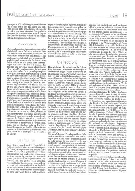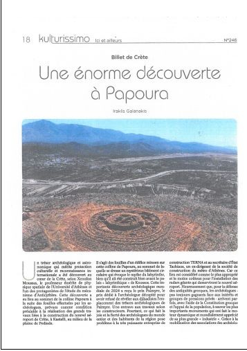 Στο μηνιαίο ένθετο KULTURISSIMO της εφημερίδας Tageblatt του Λουξεμβούργου (τεύχος Μαρτίου) φιλοξενήθηκε δήλωση του Δημάρχου Μινώα Πεδιάδας, Βασίλη Κεγκέρογλου, σχετικά με τη σημαντική αρχαιολογική ανακάλυψη στο Λόφο Παπούρα και τις εξελίξεις που τη συνοδεύουν.