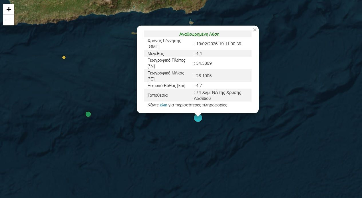 Το επίκεντρό του ήταν 74 χλμ. νοτιοανατολικά της Χρυσής Λασιθίου ενώ το εστιακό του βάθος του ήταν 4,7 χιλιόμετρα.