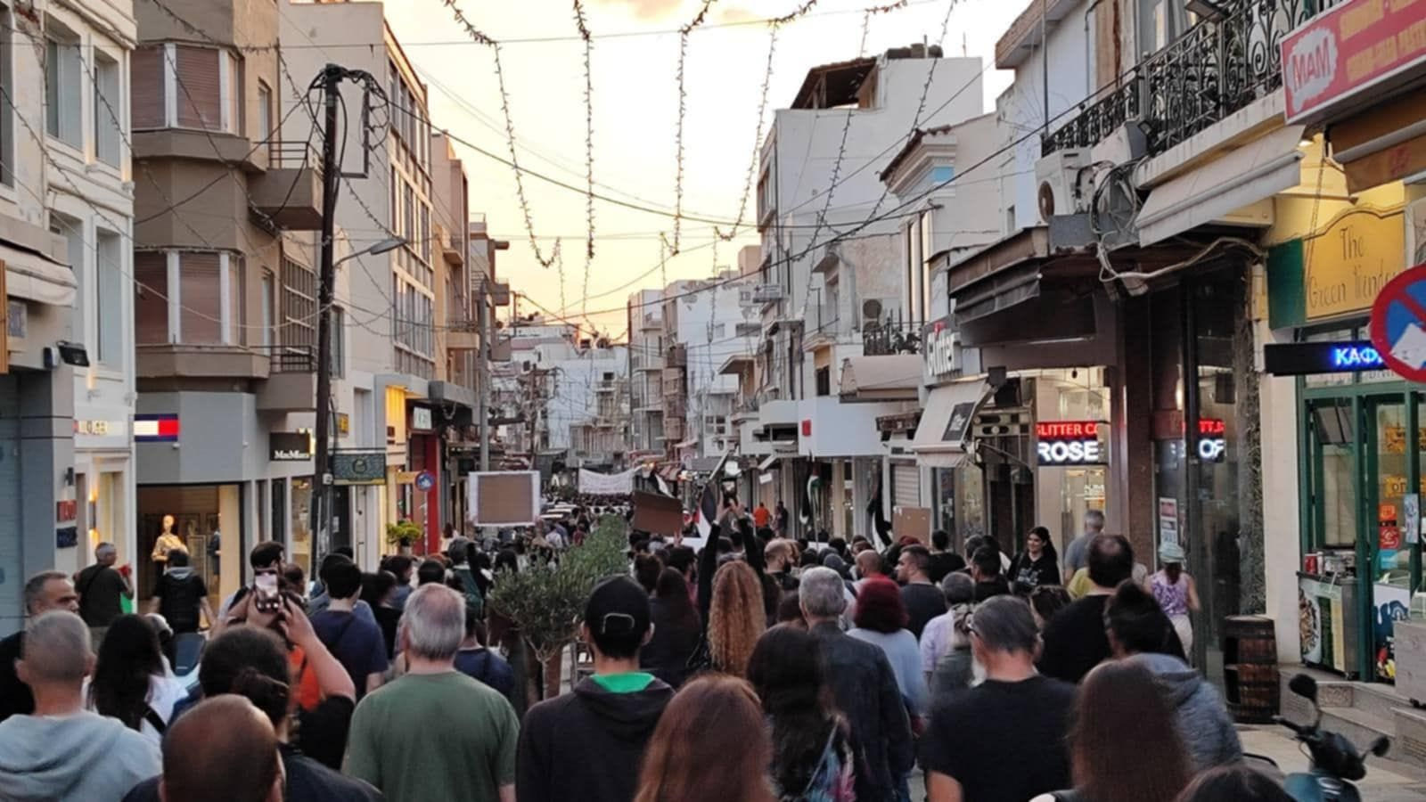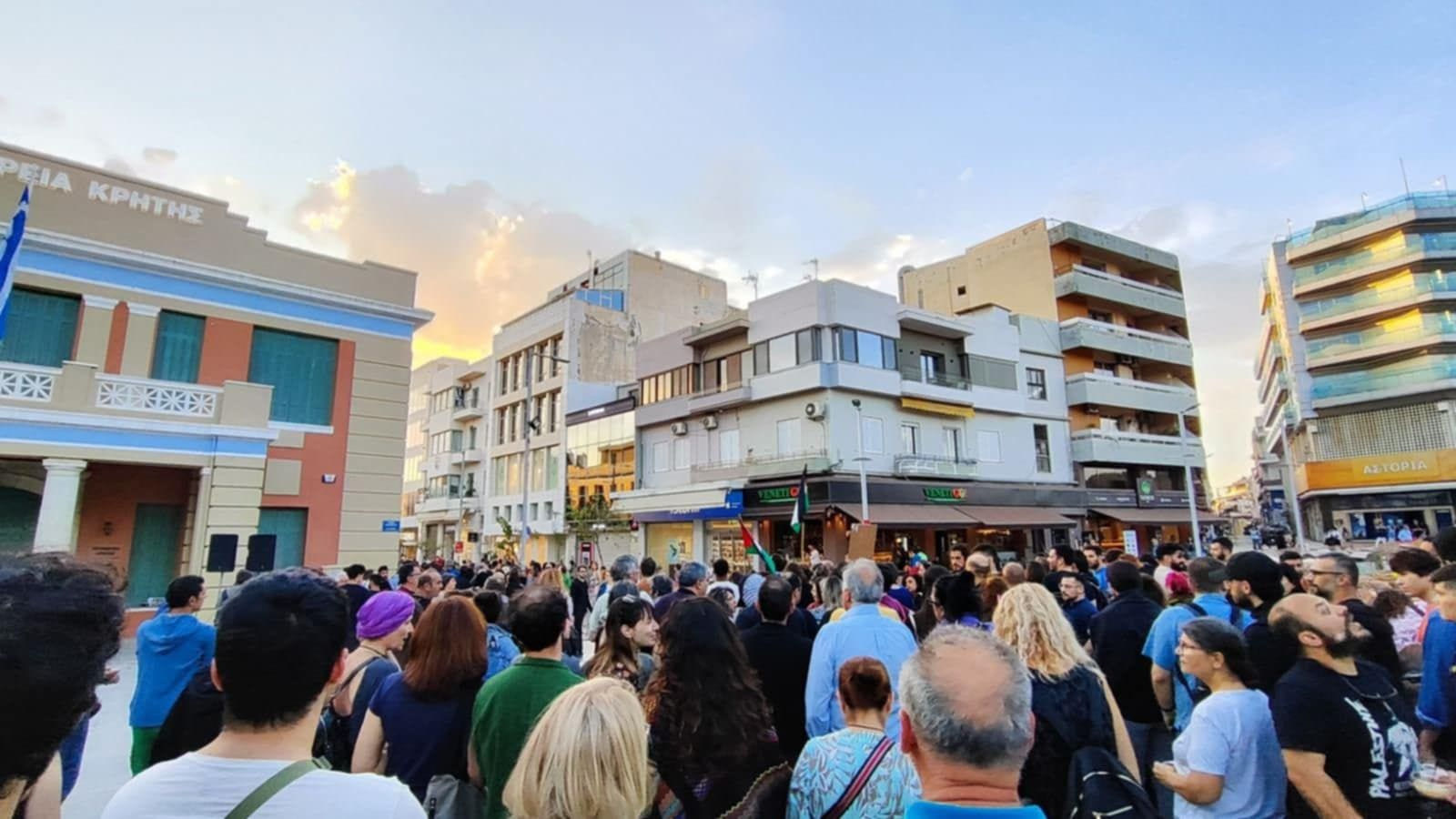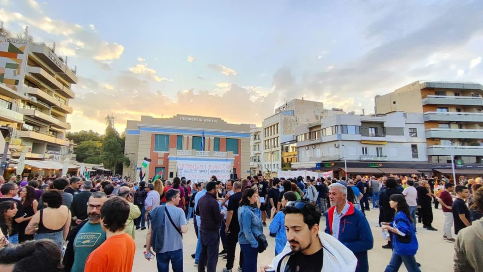Ακόμα μία συγκέντρωση διαμαρτυρίας βρίσκεται σε εξέλιξη στο Ηράκλειο, υπέρ του Παλαιστινιακού λαού που δοκιμάζεται σκληρά μετά την κλιμάκωση της επίθεσης των Ισραηλινών.