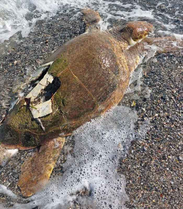 Δύο χελώνες καρέτα – καρέτα ξεβράστηκαν νεκρές στην περιοχή της Ελούντας, το τελευταίο τριήμερο.
