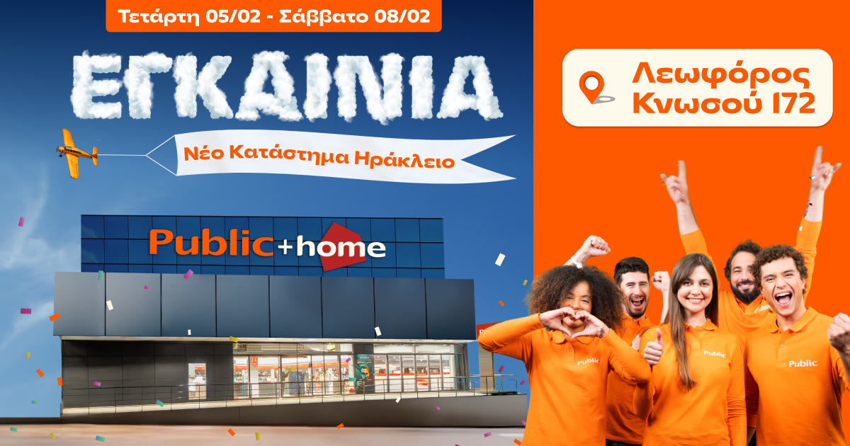 Αυτή την Τετάρτη, 5 Φεβρουαρίου, τα Public προσκαλούν τους καταναλωτές να γιορτάσουν για ένα τετραήμερο γεμάτο προσφορές, τη μοναδική εμπειρία του μεγάλου “Public + home” που έφτασε στην πόλη του Ηρακλείου!