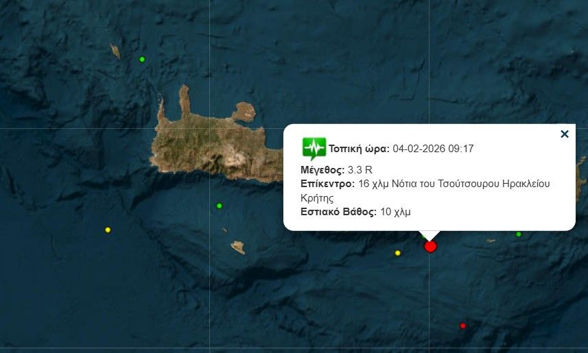 Νέος σεισμός σημειώθηκε σήμερα νότια της Κρήτης.