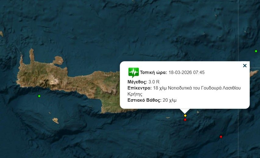 Το επίκεντρό του ήταν 18 χιλιόμετρα νοτιοδυτικά του Γουδουρά Λασιθίου και το εστιακό του βάθος εντοπίστηκε στα 20 χιλιόμετρα.