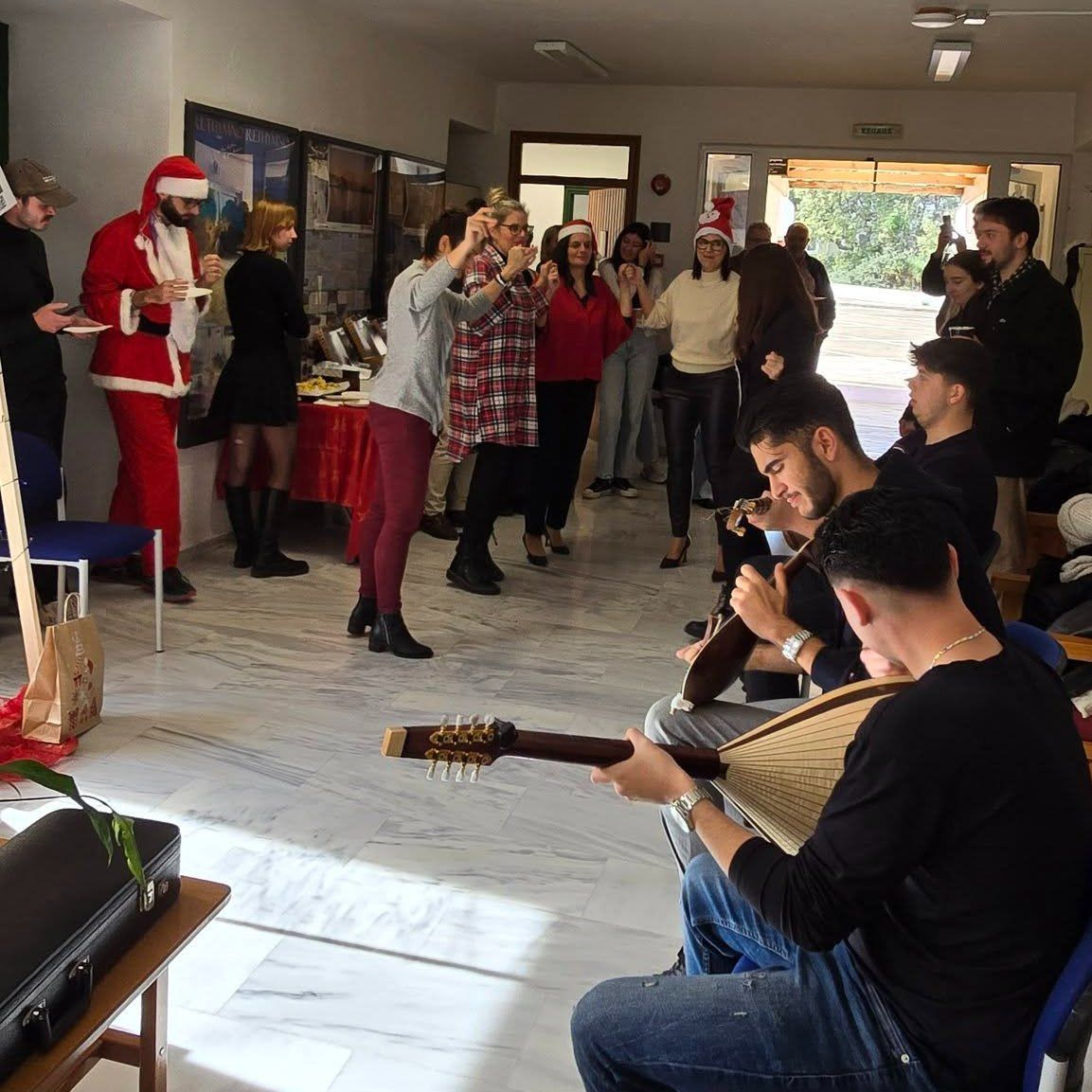 Γιορτάζοντας το πνεύμα των Χριστουγέννων με το κρητικό μουσικό σχήμα των Γεωργίου Μαριδάκη, Ραφαήλ Παλιεράκη και Θοδωρή Ζαφειρόπουλο, παίρνοντας μια γεύση από γιορτινά κεράσματα και στολίζοντας το δέντρο.