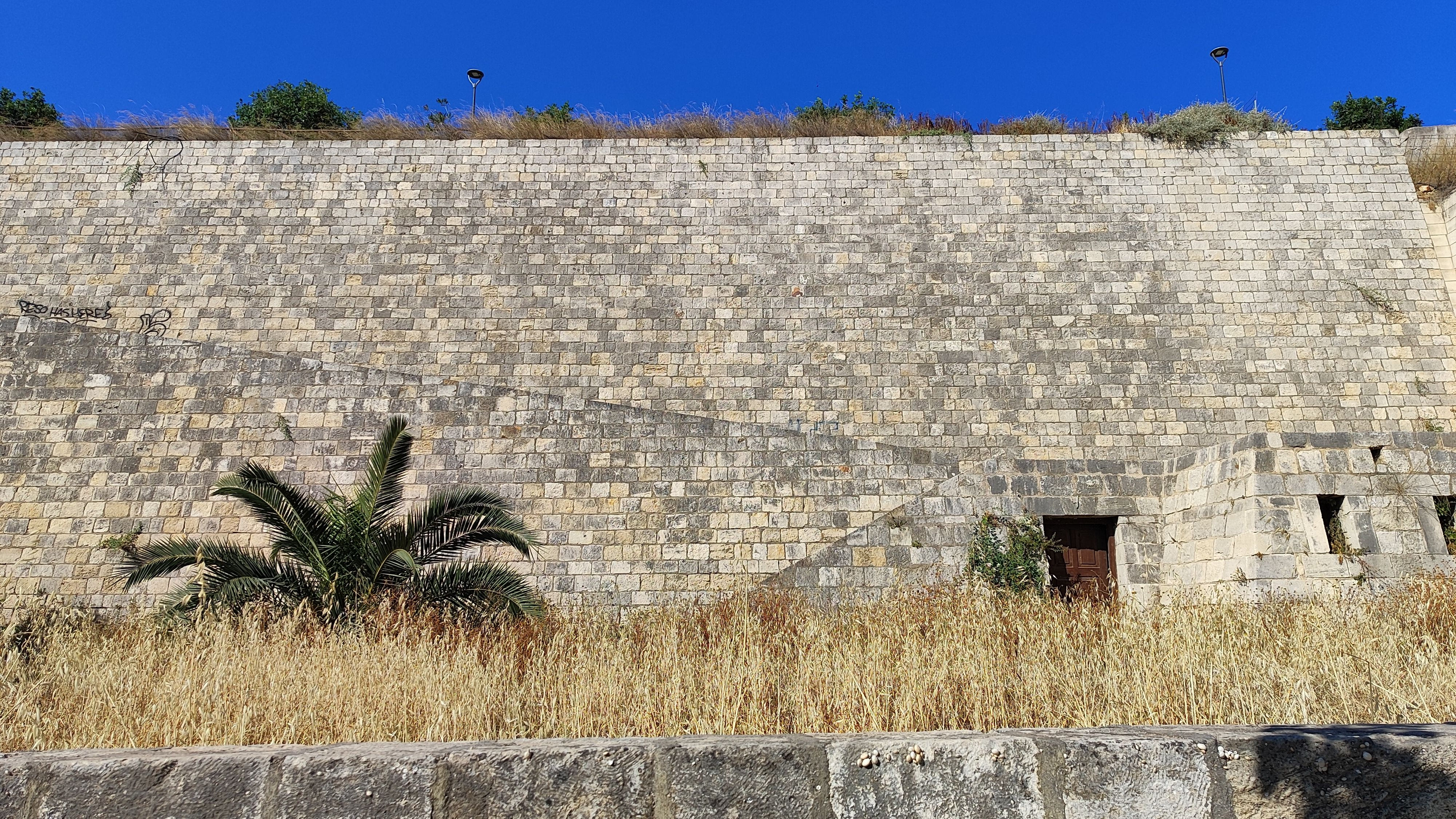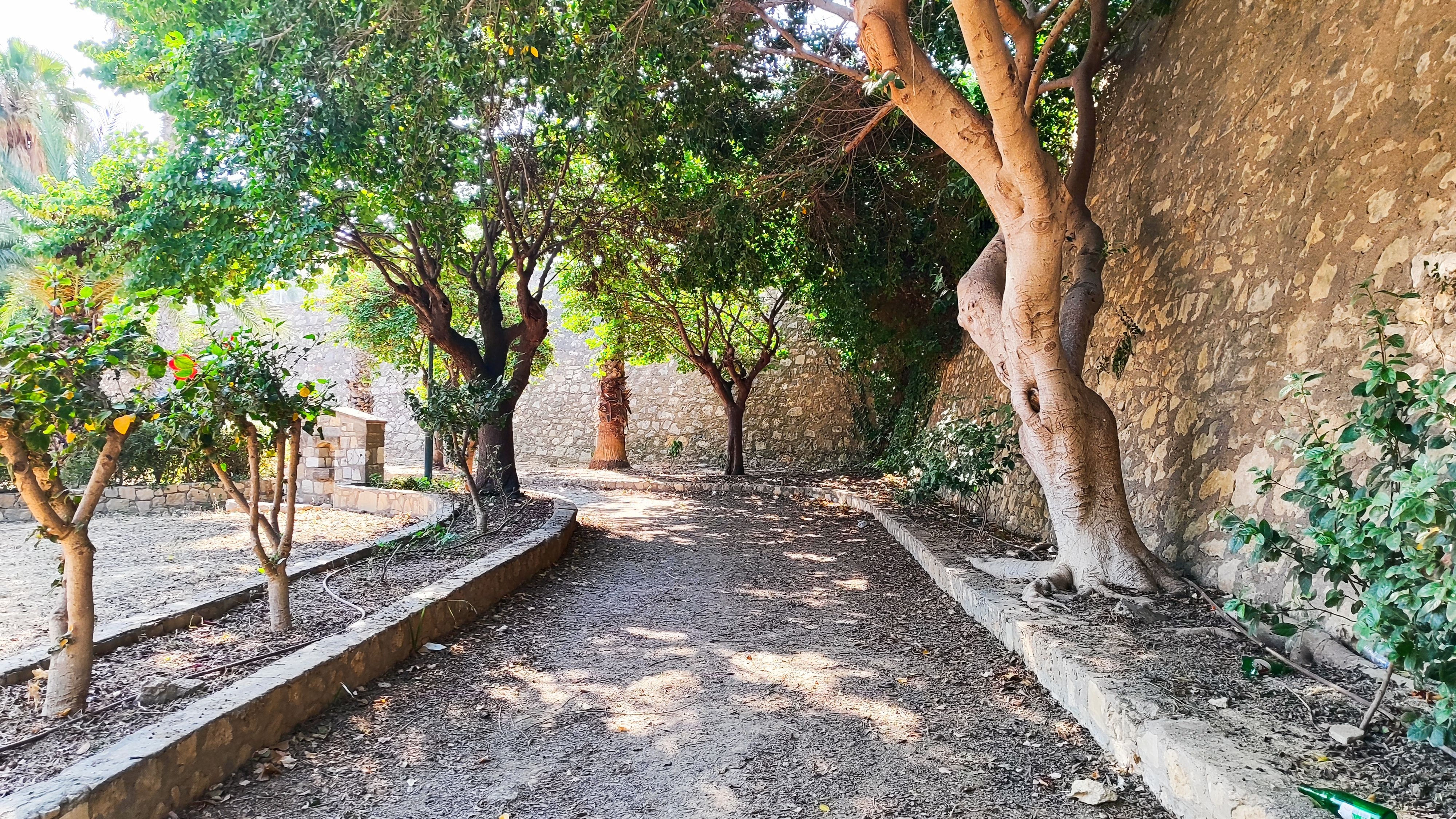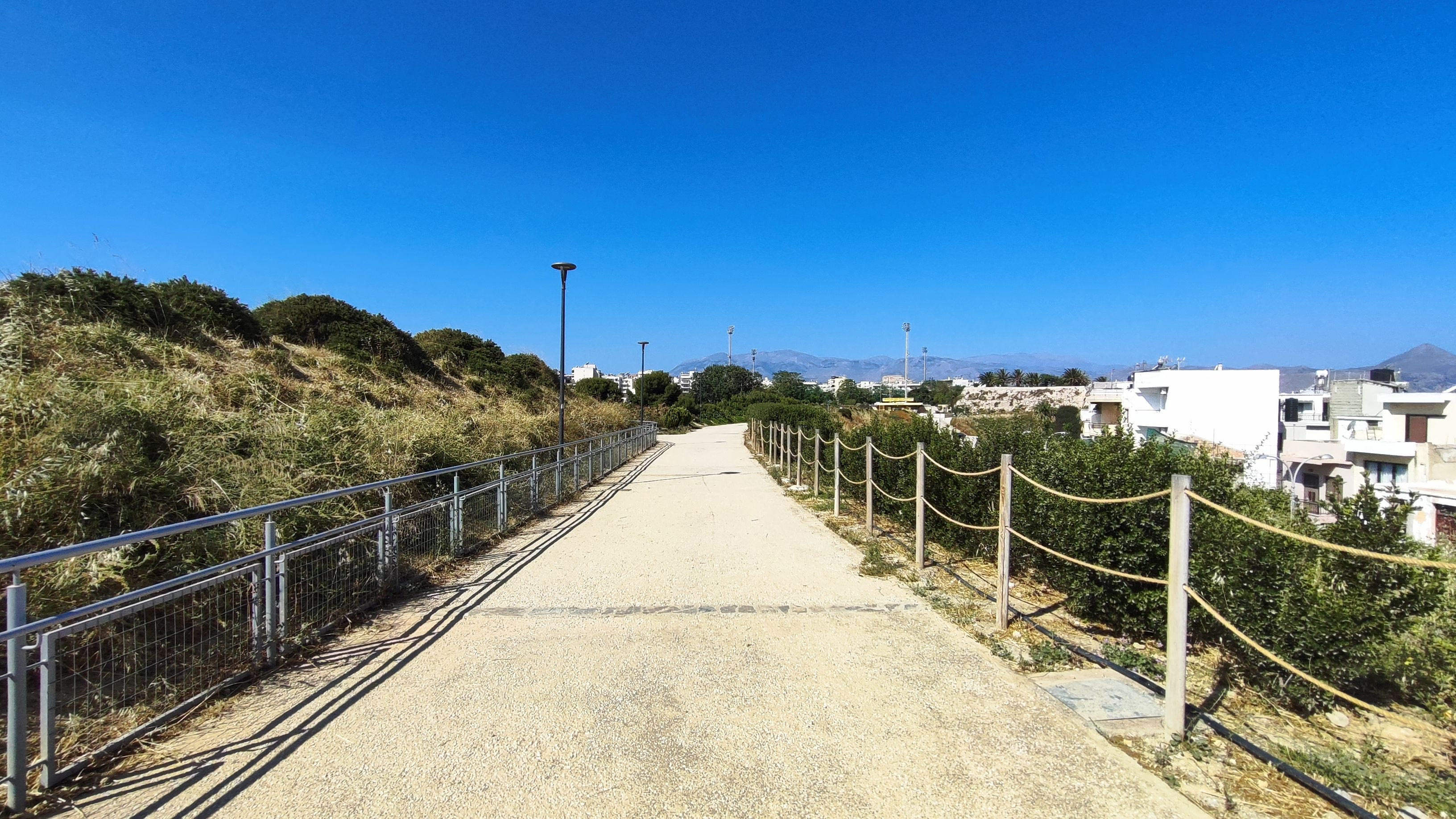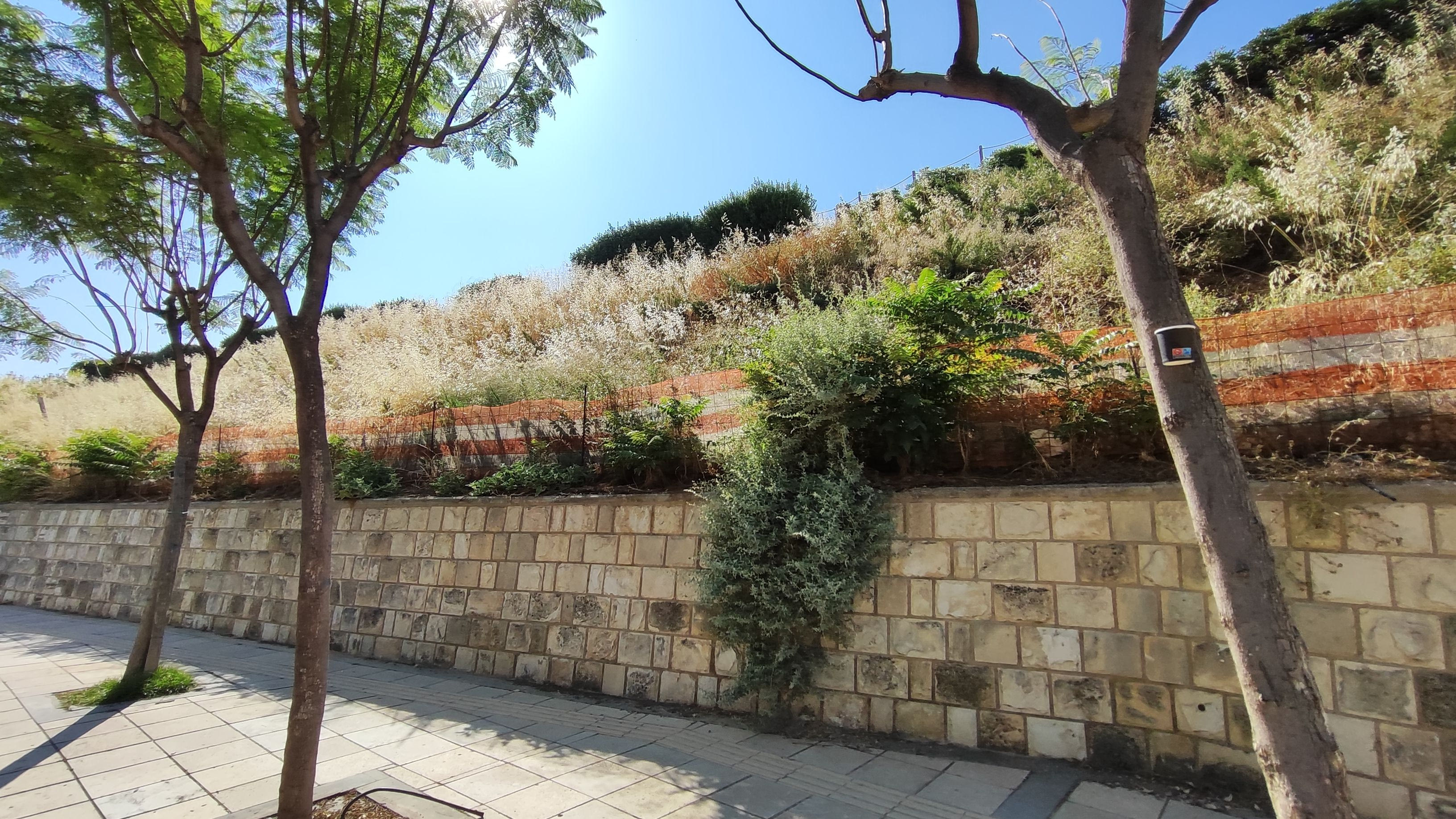 Οι διάδρομοι είναι επίσης σε καλό επίπεδο, ένα κομμάτι που ίσως λείπει είναι η σκιά, ειδικά βαδίζοντας προς τον Προμαχώνα του Αγίου Ανδρέα. Τα φυτά που έχουν επιλεχθεί είναι μεν όμορφα αλλά είναι χαμηλά και δεν προσφέρουν κάποια προστασία από τον ήλιο, ειδικά εκεί σε αυτό το ύψος που χτυπάει περισσότερο. Εντωμεταξύ σε αυτό το κομμάτι από την Πύλη Βηθλεέμ και μέχρι τον Προμαχώνα υπάρχουν εργασίες σε εξέλιξη, ώστε να παραδοθεί και αυτό στο κοινό.