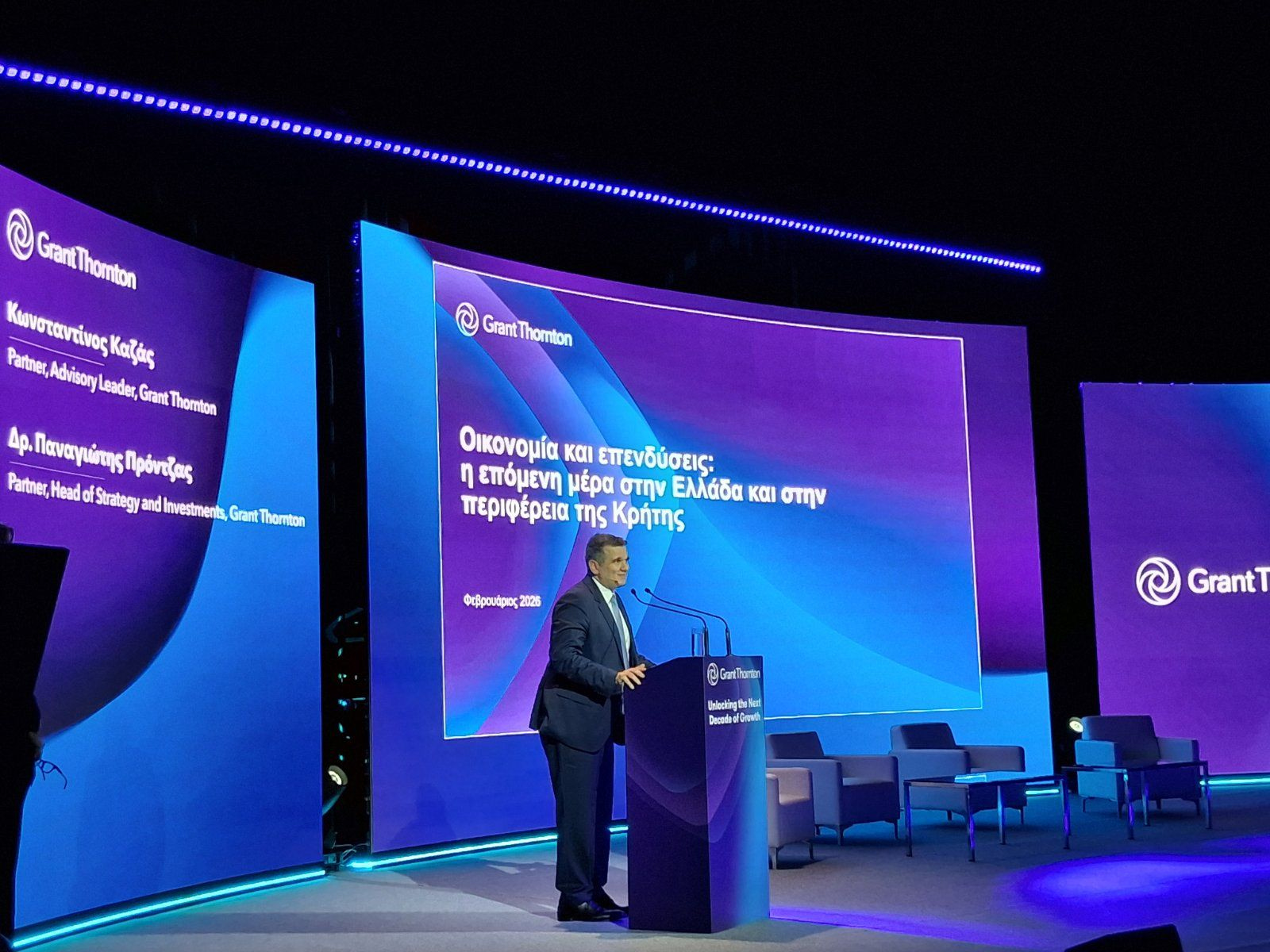 Η ανάδειξη των προκλήσεων και των ευκαιριών της επόμενης δεκαετίας με έμφαση στη βιώσιμη ανάπτυξη της Κρήτης είναι ο στόχος της εκδήλωσης της Grant Thornton με τίτλο «Unlocking the Next Decade of Growth: Embracing Technology, Investment, and Global Expansion» που ξεκίνησε πριν από λίγο στην κατάμεστη αίθουσα του Πολιτιστικού Συνεδριακού Κέντρου Ηρακλείου.