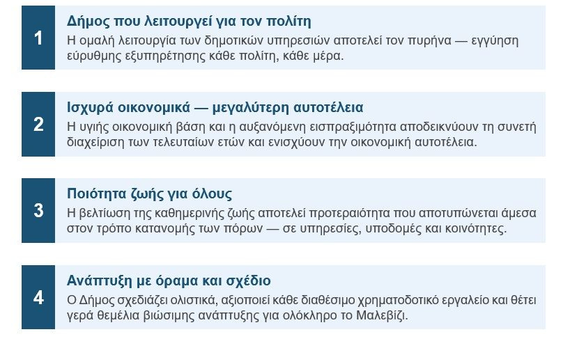 Ο προϋπολογισμός αποτυπώνει τη συστηματική οικονομική διαχείριση της τελευταίας εξαετίας και θέτει γερά θεμέλια για ένα Μαλεβίζι με σύγχρονες υποδομές και βελτιωμένες υπηρεσίες για όλες τις κοινότητες.