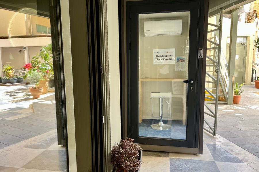 Ο πρώτος ηχομονωμένος χώρος εργασίας (office booth) για την εξυπηρέτηση των αναγκών των ψηφιακών νομάδων και των εργαζόμενων από απόσταση κατοίκων στο Δήμο Ηρακλείου που έχει εγκατασταθεί στο Πολύκεντρο Νεολαίας με τη συνεργασία της ΔΕΠΑΝΑΛ Α.Ε., παρουσιάστηκε στο πλαίσιο της 6ης συνάντησης της Τοπικής Ομάδας Δράσης του Δήμου Ηρακλείου για την Πράξη Remote-It του Ευρωπαϊκού Προγράμματος URBACT IV 2021-2027.