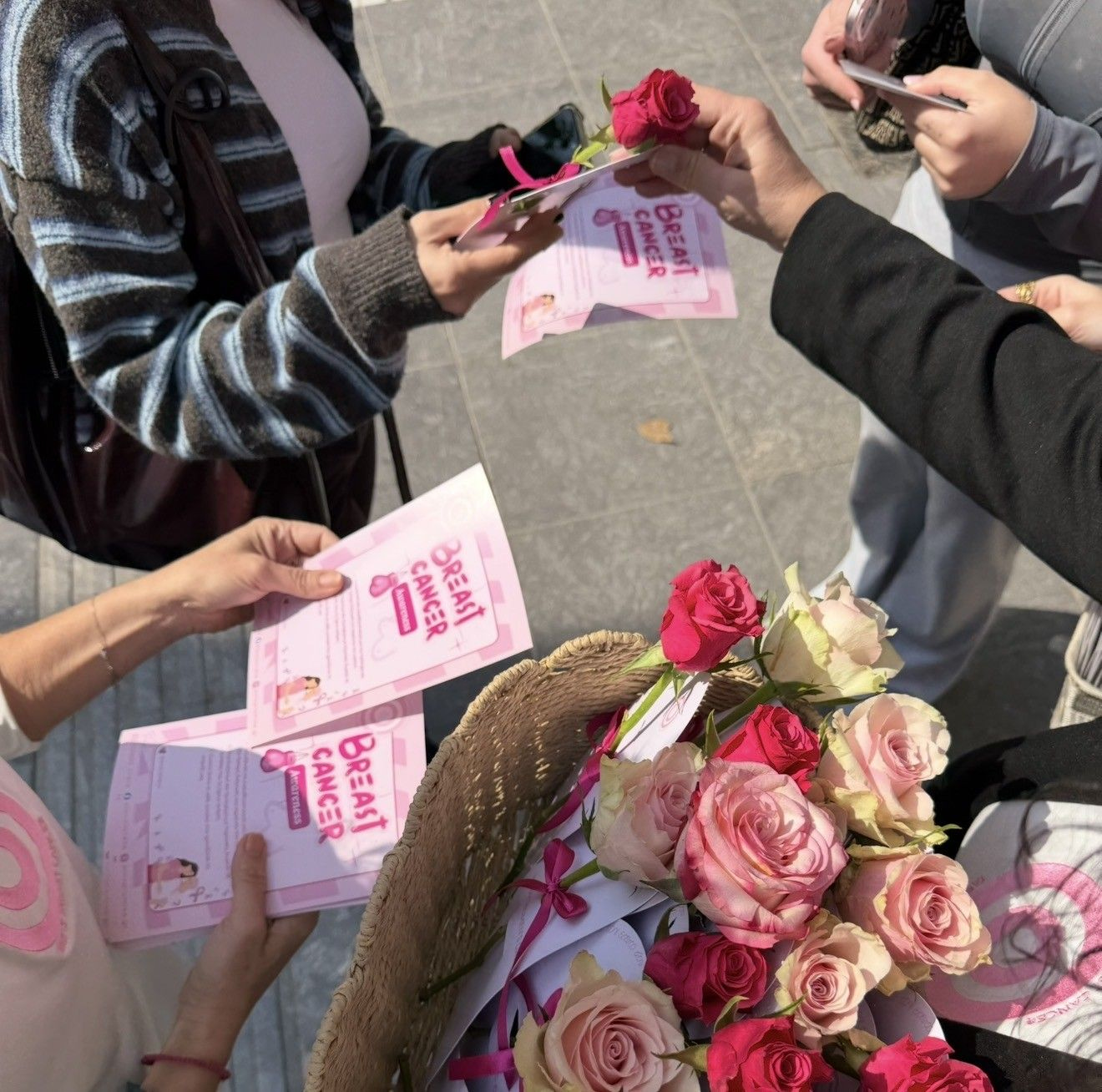 Τα τριαντάφυλλα συνοδεύονταν από ένα μικρό συμβολικό μήνυμα αφιερωμένο στη γυναίκα, με στόχο να υπενθυμίσει τη σημασία της φροντίδας, της υγείας, της πρόληψης και της έγκαιρης διάγνωσης του καρκίνου του μαστού.