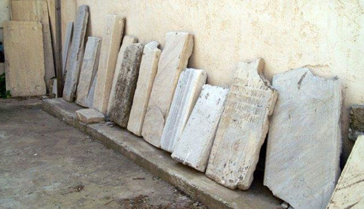Στον περίβολο της εκκλησίας εκτίθενται τριάντα περίπου επιτύμβιες στήλες που χρονολογούνται από το 1669 έως το 1854. Είναι λίθινες και φέρουν διακόσμηση και επιγραφή στα αρμενικά, ενίοτε στα ελληνικά και τουρκικά. Μνημονεύουν ονόματα κληρικών, ιεροψαλτών και κοσμικών, από οικογένειες που συμμετείχαν πιθανώς στο ενοριακό συμβούλιο και ετάφησαν εκεί κατά την Τουρκοκρατία.