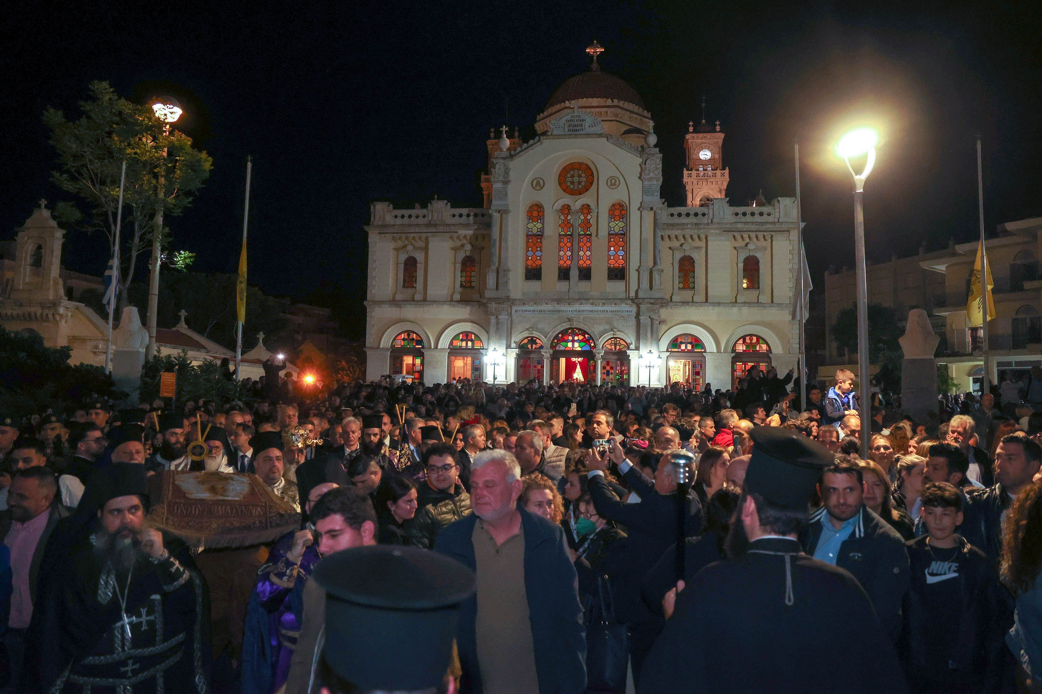 Πρόκειται για τους Επιταφίους του Μητροπολιτικού Ναού του Αγίου Μηνά με τον Αρχιεπίσκοπο Κρήτης στην κεφαλή της πομπής, ενώ συνοδεύεται από τη Φιλαρμονική Ορχήστρα του Δήμου Ηρακλείου, Σώματα Ασφαλείας, εθελοντές και στρατιωτικό άγημα, του Καθεδρικού Ναού του Αγίου Τίτου και του ιστορικού ναού του Αγίου Δημητρίου.