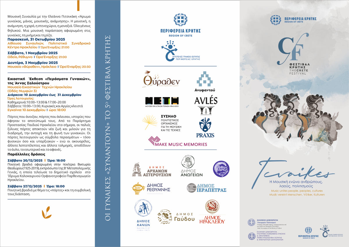 Αναλυτικά οι εκδηλώσεις της παράλληλης δράσης «Γυναίκες» του 5ου Φεστιβάλ Κρήτης:
