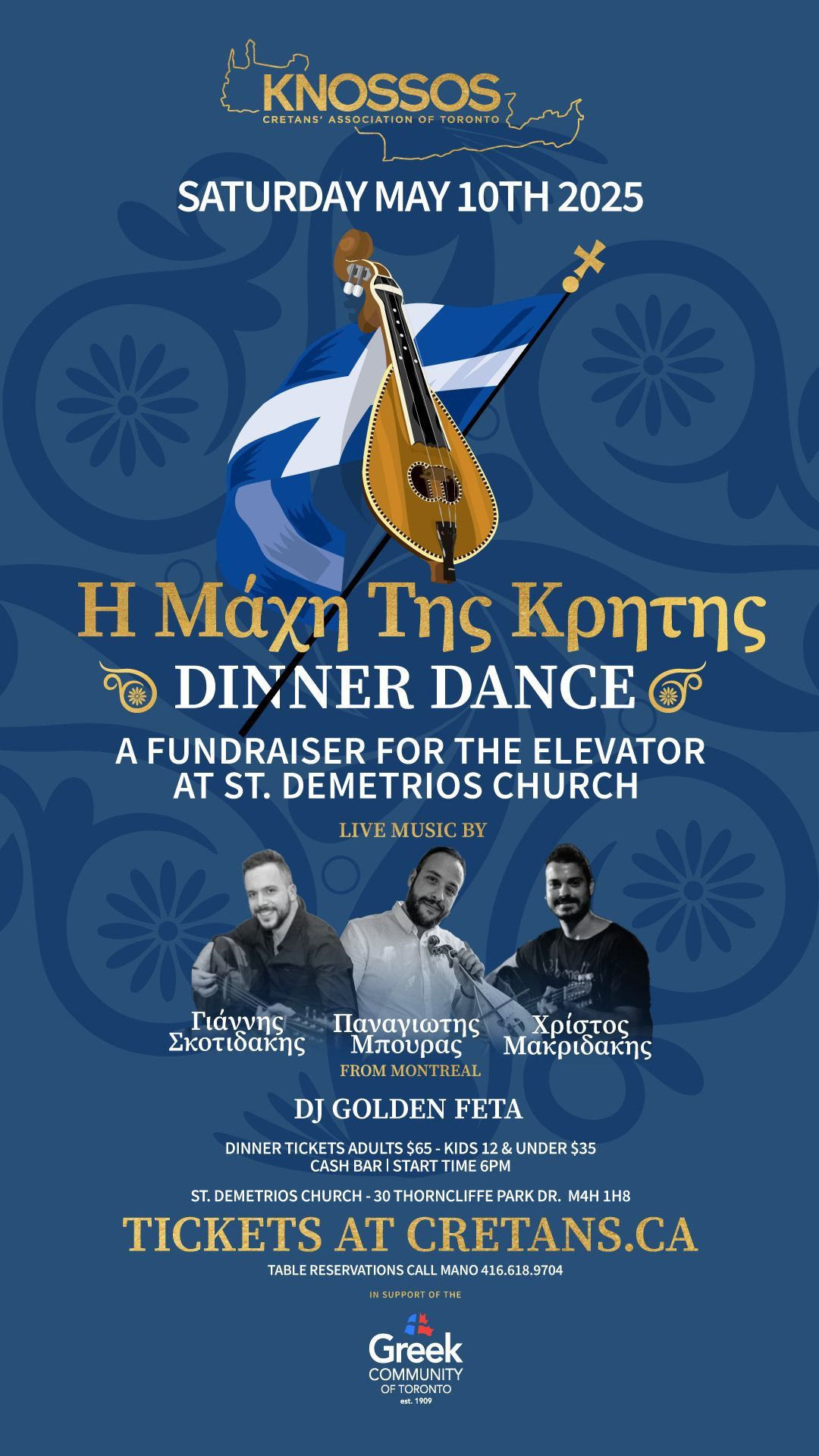 Με σεμνότητα, αλλά και αίσθημα ιστορικής ευθύνης και συλλογικής προσφοράς, ο Σύλλογος Κρητών Τορόντο, η Κνωσσός, τίμησε την 83η επέτειο της Μάχης της Κρήτης, διοργανώνοντας μία εκδήλωση-ορόσημο για την ελληνοκαναδική ομογένεια. Η διπλή στόχευση της βραδιάς, να κρατηθεί ζωντανή η μνήμη ενός από τα πλέον ηρωικά κεφάλαια της ελληνικής νεώτερης ιστορίας και να ενισχυθεί οικονομικά ένα ζωτικής σημασίας έργο υποδομής για την τοπική παροικία, κατέστησε την πρωτοβουλία ιδιαίτερης σημασίας και απήχησης.