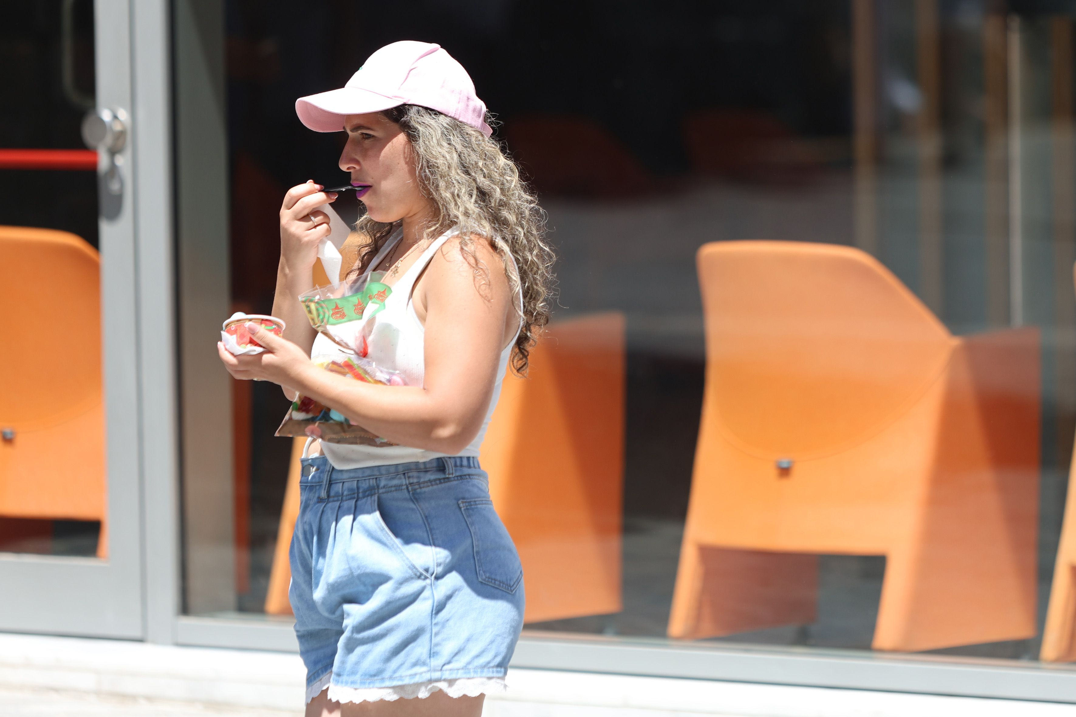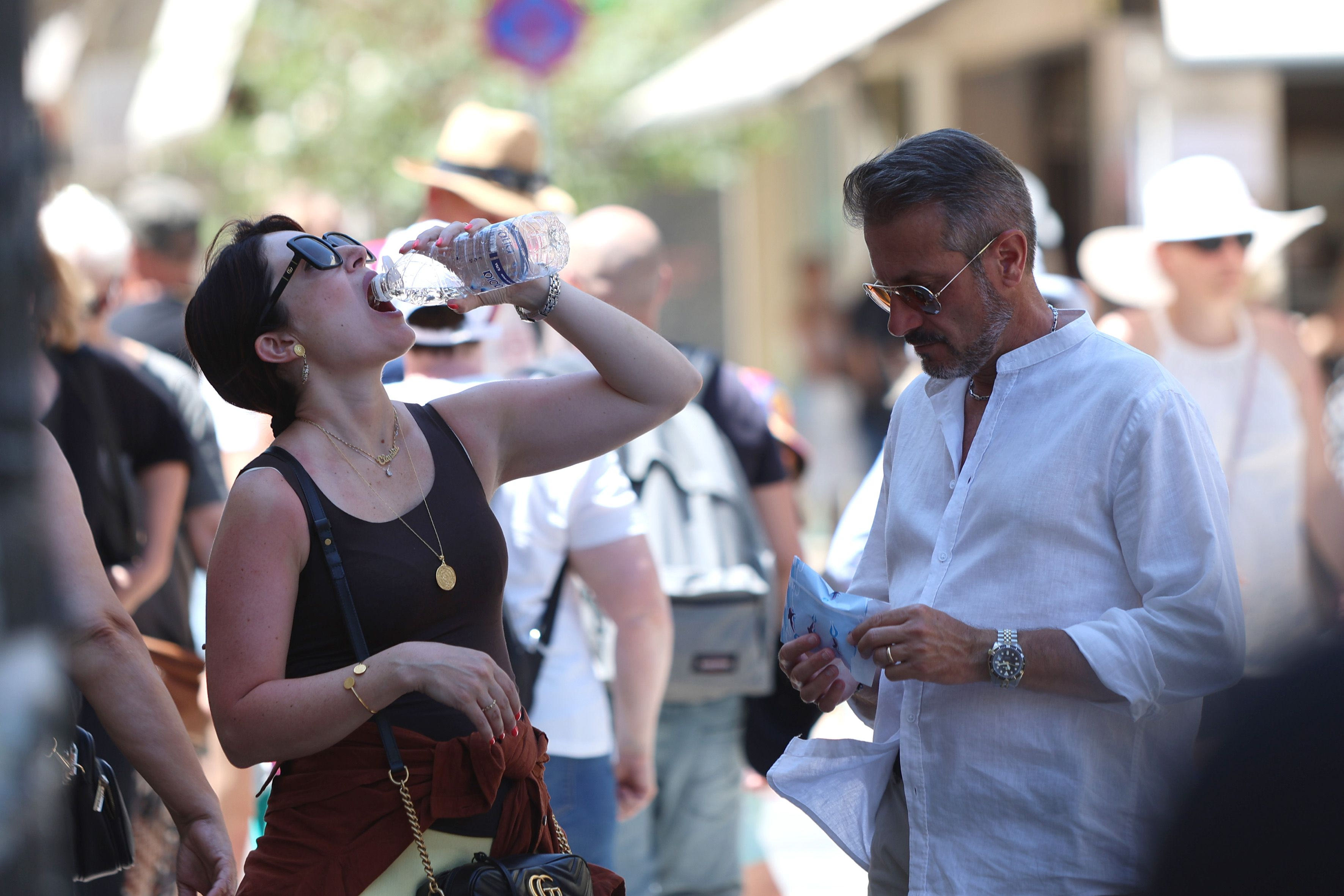 Ομπρέλες, βεντάλιες, πετσέτες, παγωτά και βέβαια νερά έχουν… επιστρατεύσει οι άνθρωποι που κυκλοφορούν στο κέντρο του Ηρακλείου τη δεύτερη ημέρα του καύσωνα.
