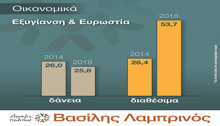 Δημιουργήσαμε έναν οικονομικά εύρωστο Δήμο. Παραλάβαμε τον Αύγουστο του 2014, ταμείο (καταθέσεις σε τράπεζες) με υπόλοιπο 25.420.594,80€, το οποίο έχει φτάσει πια το επίπεδο των 52.552.478,56€, επιτρέποντας στον Δήμο να υλοποιεί σειρά έργων και δράσεων που έχει θέσει ως προτεραιότητα. Έτσι, όσον αφορά την εξυγίανση του ταμείου του Δήμου, σημειώνουμε τα εξής: