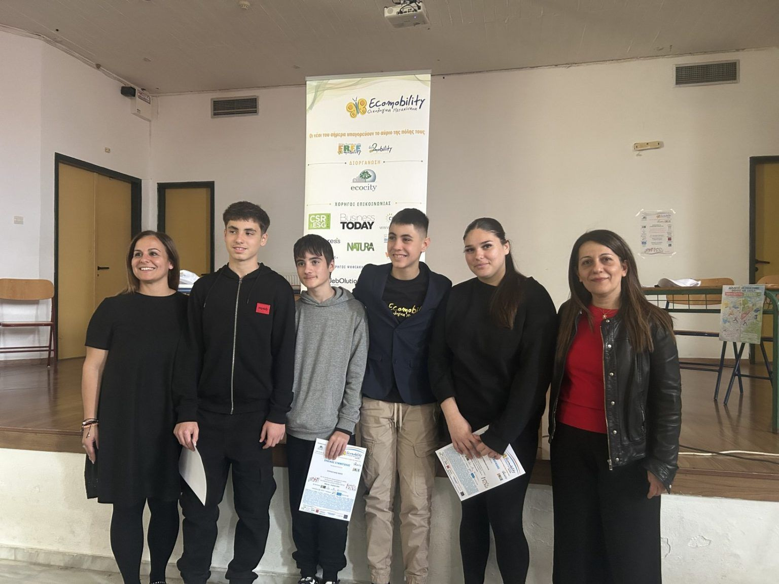 Ιδιαίτερα συγκινητική ήταν η παρουσία μαθητών και μαθητριών της περσινής ομάδας του σχολείου, που είχε κατακτήσει τη 2η θέση στον Πανελλήνιο Διαγωνισμό Ecomobility, και βρέθηκε δίπλα στη φετινή ομάδα με ενδιαφέρον, ενθάρρυνση και το πιο θερμό χειροκρότημα.
