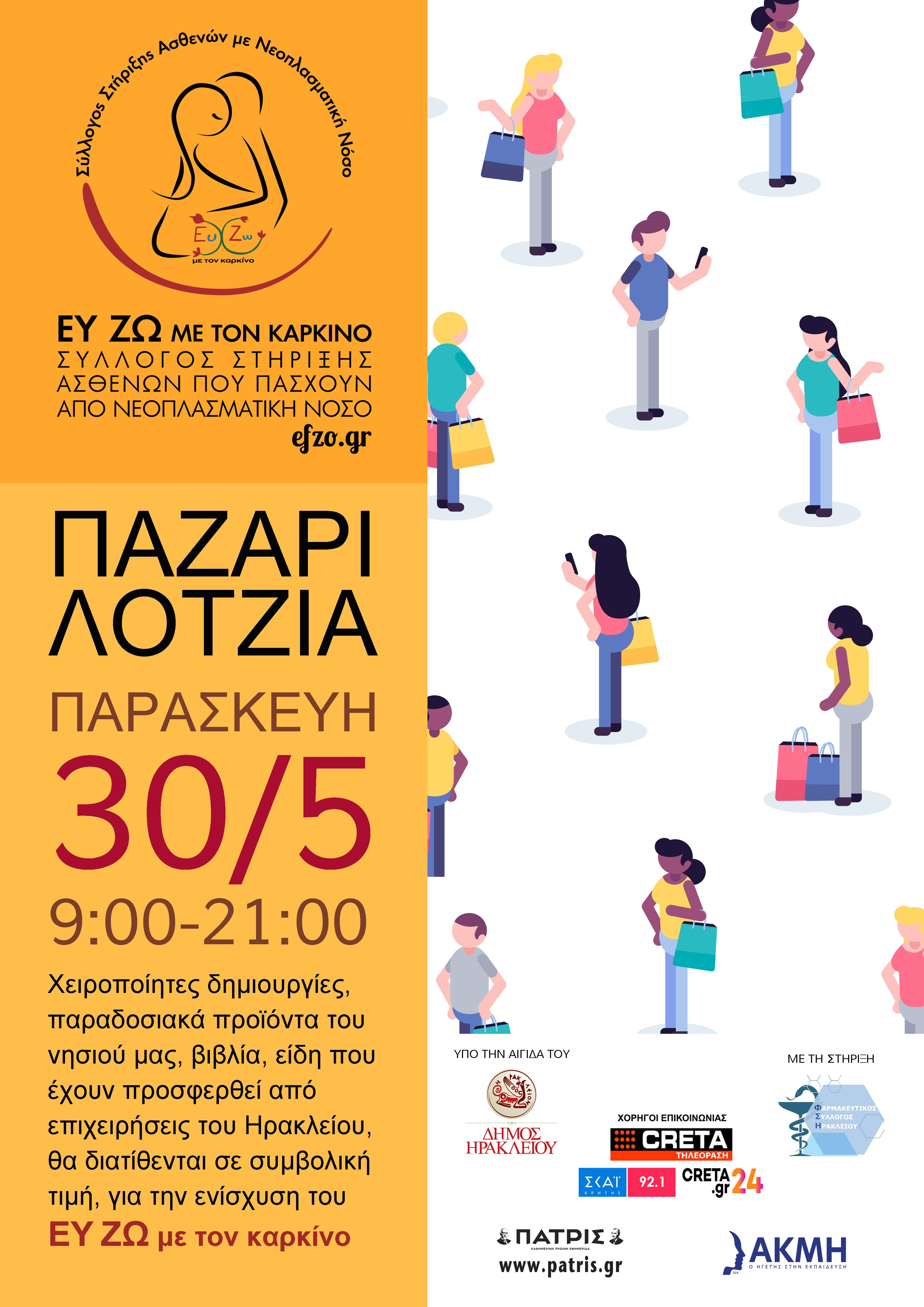 Το παζάρι γίνεται για την ενίσχυση των σκοπών του Συλλόγου “Ευ Ζω με τον καρκίνο“, ο οποίος στηρίζει διαχρονικά εκατοντάδες ασθενείς με καρκίνο και τις οικογένειές τους.