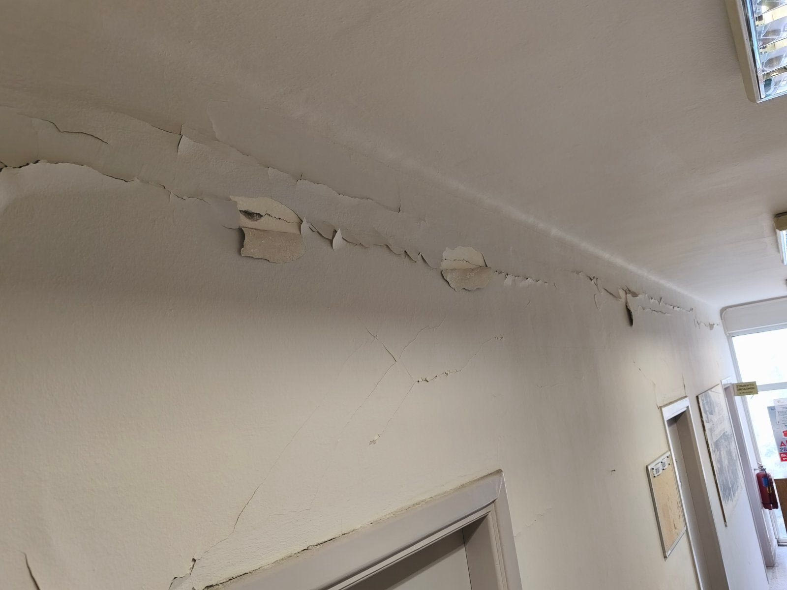 Ο πρόεδρος του Εργατικού Κέντρου Ηρακλείου Στέλιος Βοργιάς, μιλώντας στο patris.gr, αναφέρθηκε αναλυτικά στα προβλήματα του κτιρίου, που εκτός από την πτώση σοβάδων υπάρχει κίνδυνος και ηλεκτροπληξίας λόγω εισροή υδάτων μέσω των γραμμών του ηλεκτρικού ρεύματος.