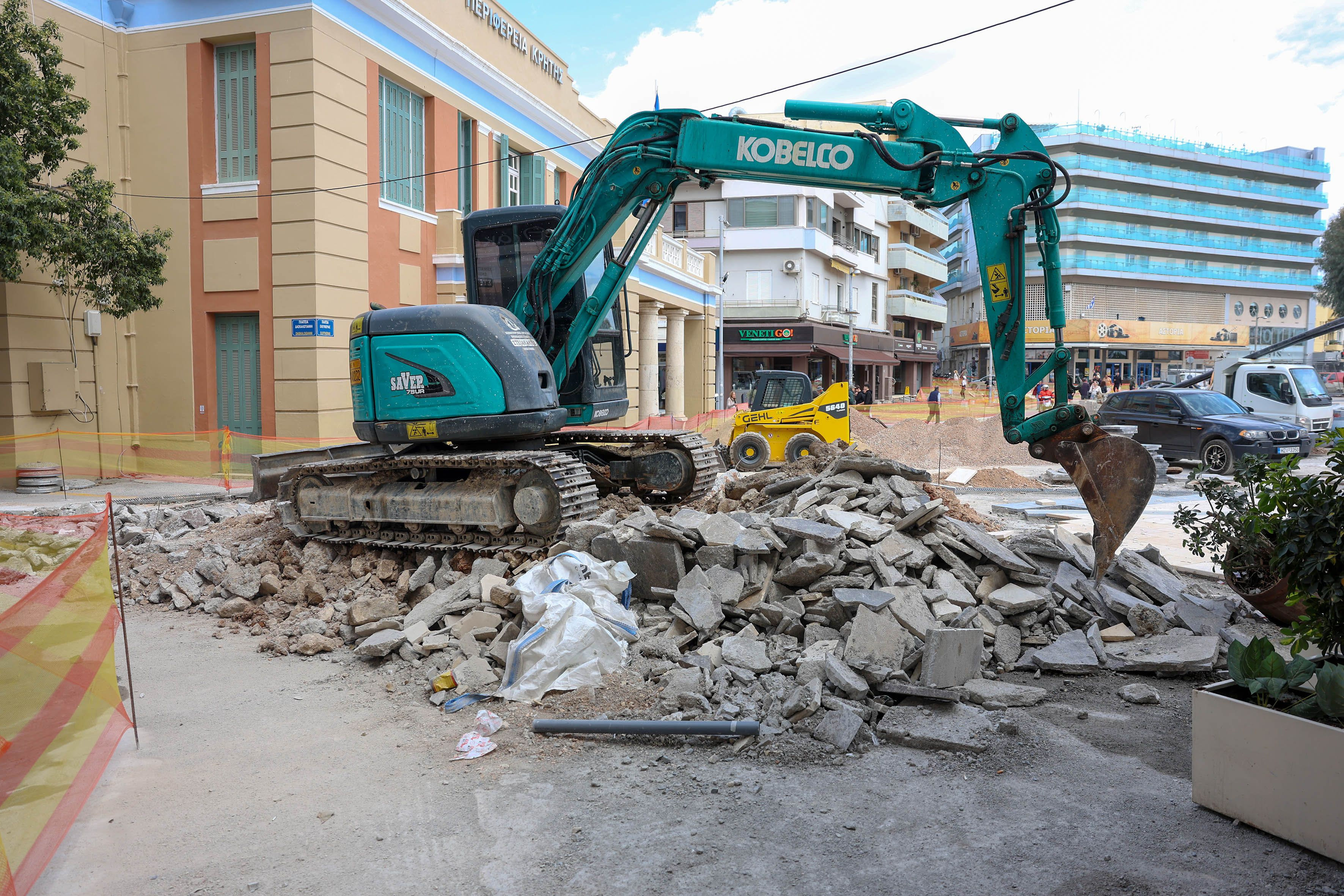 Προχωράνε μέρα τη μέρα τα έργα στο ανοικτό εργοτάξιο της Πλατείας Ελευθερίας.