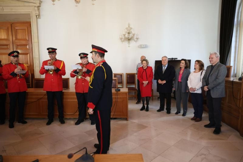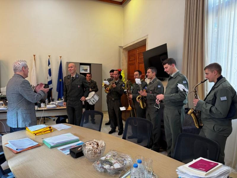 Λίγο αργότερα κατέφθασαν από τα Χανιά οι στρατιωτικοί μουσικοί της 44ης Στρατιωτικής Διοίκησης για να πουν τα χριστουγεννιάτικα κάλαντα στον Δήμαρχο Ηρακλείου ο οποίος τους ευχήθηκε υγεία, χαρά και ευημερία για την νέα χρονιά.