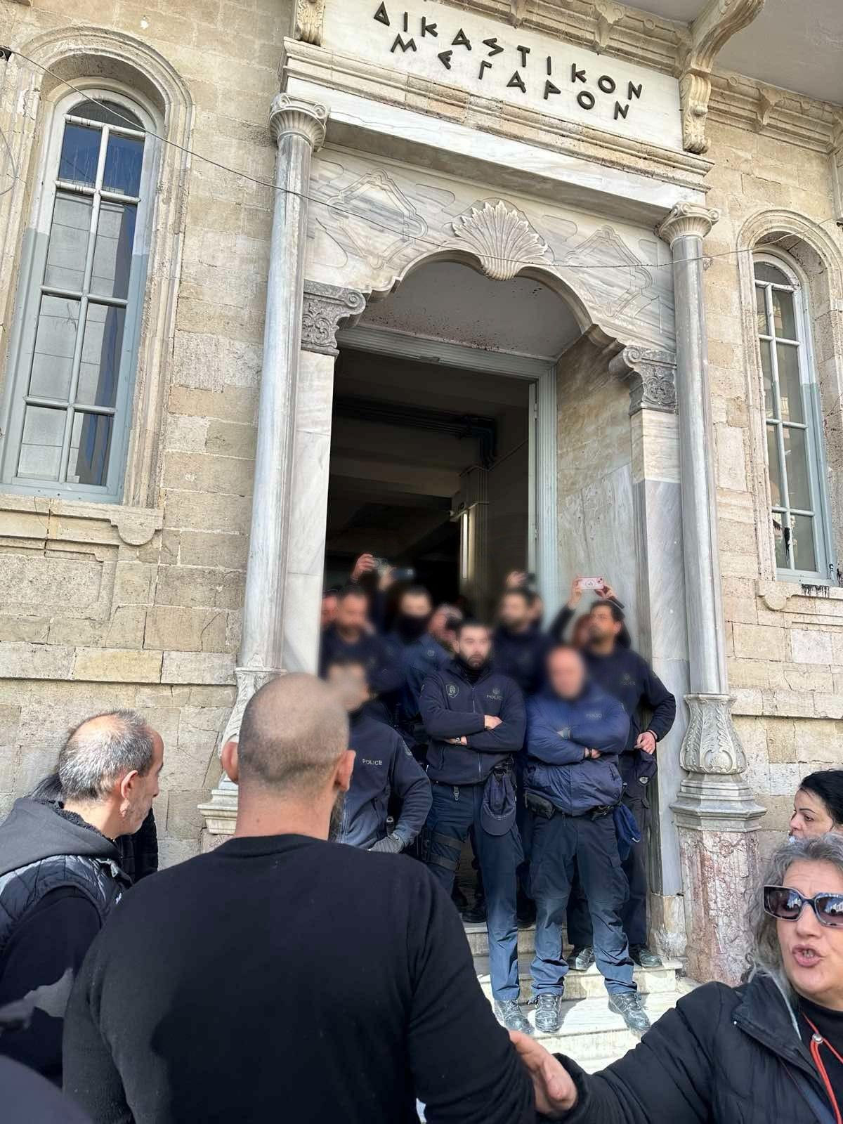 Δεκάδες πολίτες βρέθηκαν έξω από το Δικαστικό Μέγαρο Ηρακλείου, οι οποίοι και κατάφεραν να μπουν μέσα στο χώρο των δικαστηρίων μία ανάσα από το γραφείο της ανακρίτριας όπου βρίσκεται το ζευγάρι.