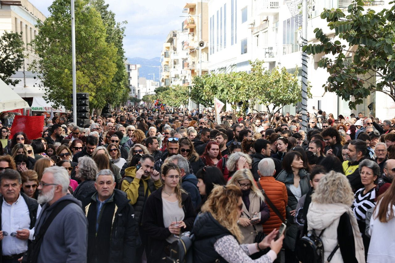 Αρκετός είναι ο κόσμος που βρίσκεται αυτή την ώρα στην Πλατεία Ελευθερίας στο Ηράκλειο, ενώ μαζικότατη και η συμμετοχή στις υπόλοιπες πόλεις της Κρήτης και της χώρας