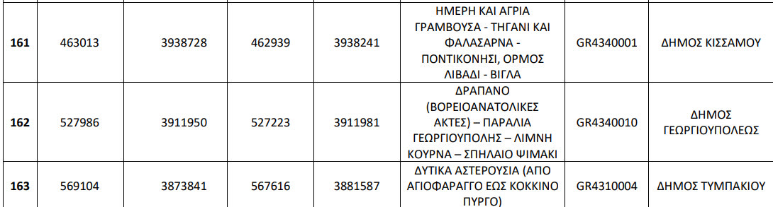 Επισυνάπτεται ο πίνακας με όλες τις «Απάτητες παραλίες» της χώρας