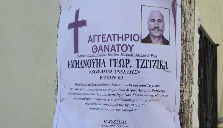 Σε ό,τι αφορά το σκηνικό της δολοφονίας, ο 23χρονος αλλοδαπός περιγράφει στην κατάθεσή του ότι, αφού το αυτοκίνητο στο οποίο επέβαιναν εγκλωβίστηκε, ο 24χρονος κατέβηκε με μία μαγκούρα και χτύπησε αρχικά το παρμπρίζ το οποίο έσπασε. «Τότε ο Μανώλης έκλεισε το παράθυρο του για να προστατευθεί και ο 24χρονος χτύπησε με την μαγκούρα το τζάμι και το έσπασε. «Μανώλη γιατί ήρθες εκεί;» φέρεται να είπε βρίζοντας στον 63χρονο κτηνοτρόφο ο νεαρός. Ο τελευταίος για να τον ηρεμήσει του είπε: «Καλά-καλά δεν θα ξαναέρθω». Ξαφνικά ο επιτιθέμενος τράβηξε το όπλο από τη μέση του και πυροβόλησε τουλάχιστον τρεις φορές. Νομίζω ότι την πρώτη βολή την έπαιξε στο κεφάλι του και τις άλλες στο σώμα. Εγώ ήμουν σε κατάσταση πανικού, άνοιξα την πόρτα και έπεσα κάτω. Ένιωσα ένα πόνο στην πλάτη».