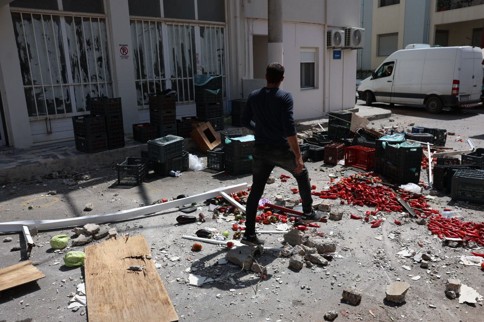 Το μπαλκόνι έπεσε, όπως ήδη έχει αναφέρει το patis.gr, πάνω στους πάγκους των παραγωγών της λαϊκής και από θαύμα δεν τραυματίστηκε κανείς.