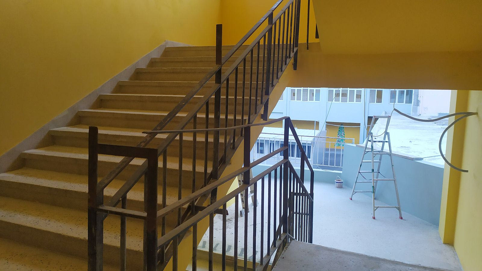 - Την κουπαστή της σκάλας που οδηγεί στον όροφο του βορινού κτιρίου και η οποία αποτελείται από επικίνδυνα προεξέχοντα σίδερα, αλλά και σημεία από τα οποία μπορούν να χωρέσουν τα κεφάλια των παιδιών με σοβαρό κίνδυνο για τη ζωή τους.