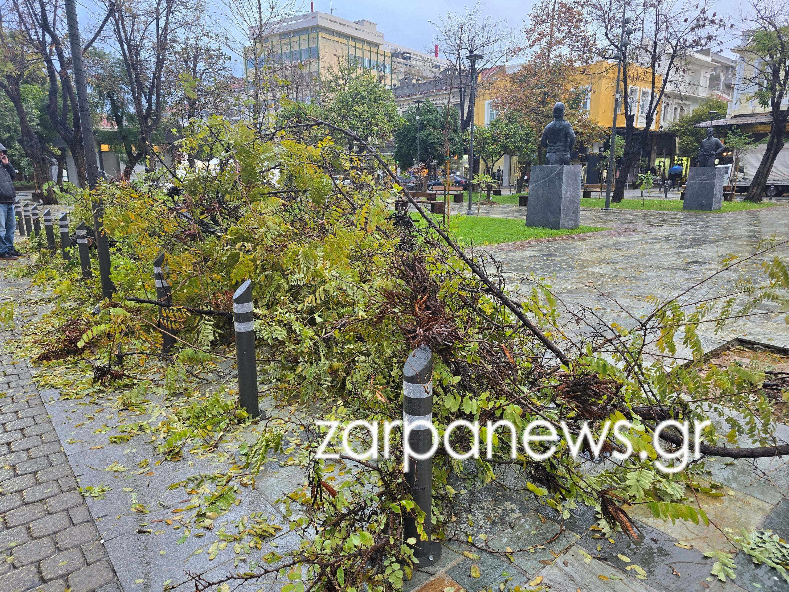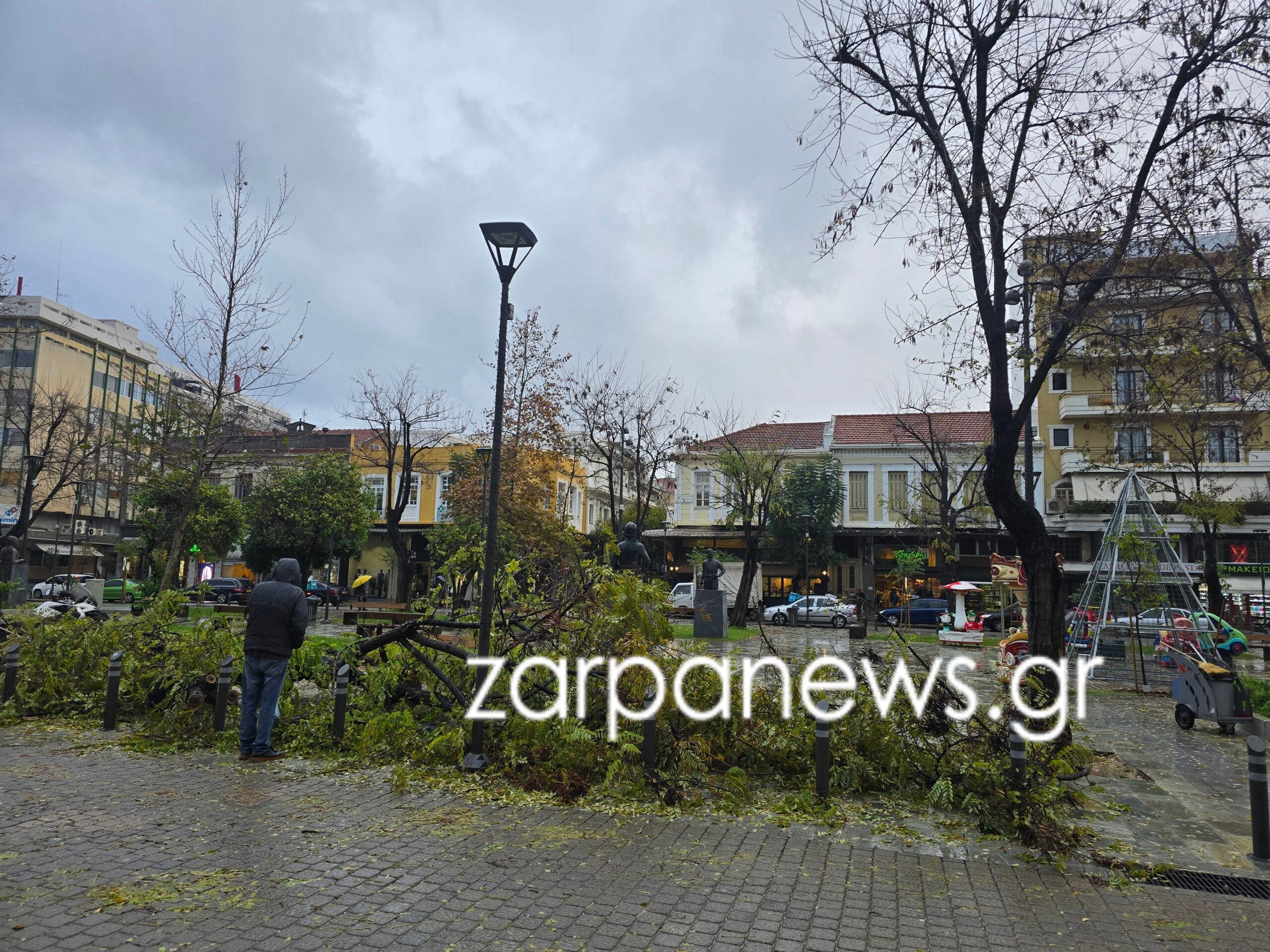 Συγκεκριμένα ένα μεγάλο δέντρο ξεριζώθηκε από τον δυνατό αέρα και έπεσε πάνω σε παγκάκια στην πλατεία 1866 στα Χανιά.