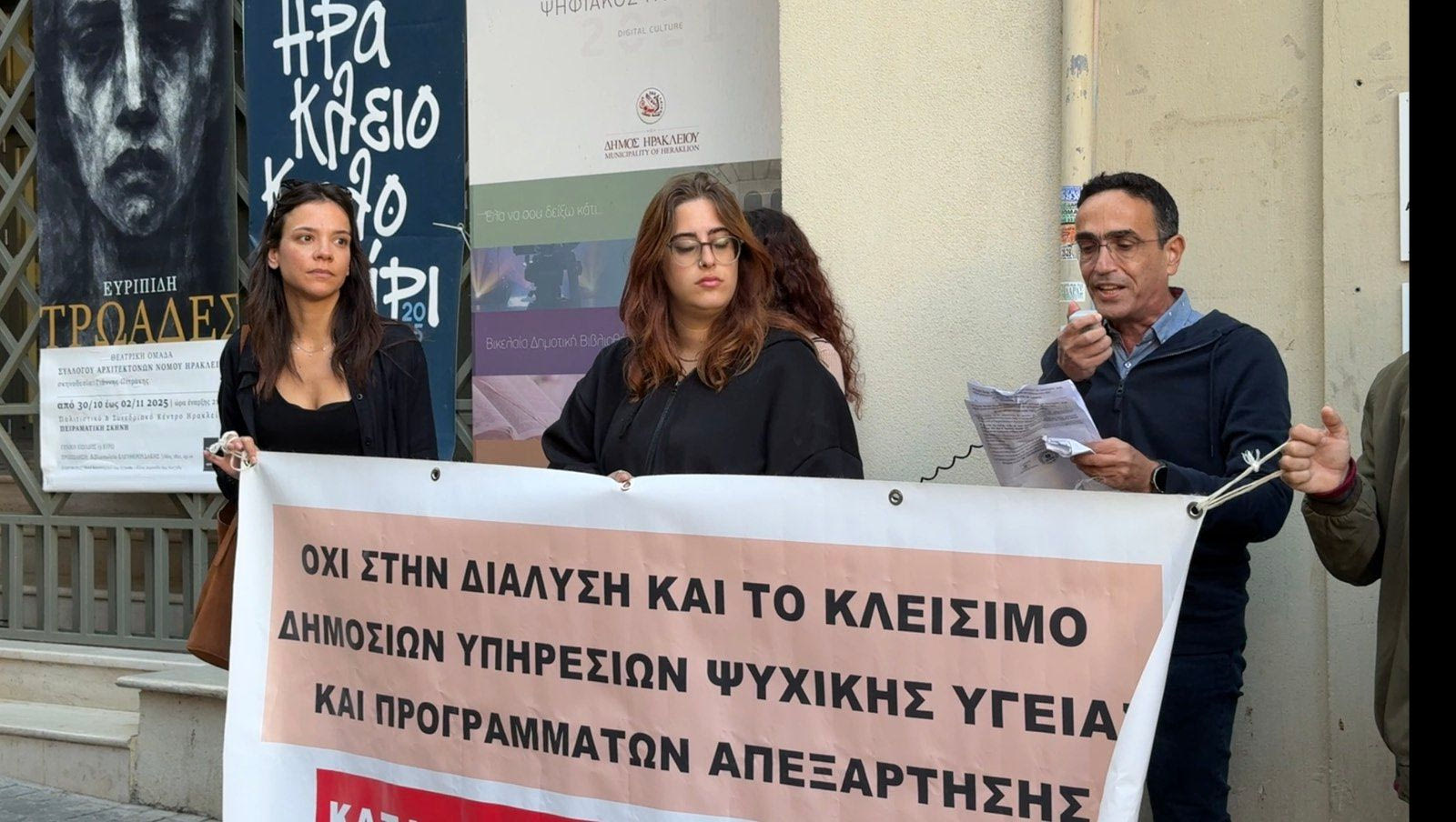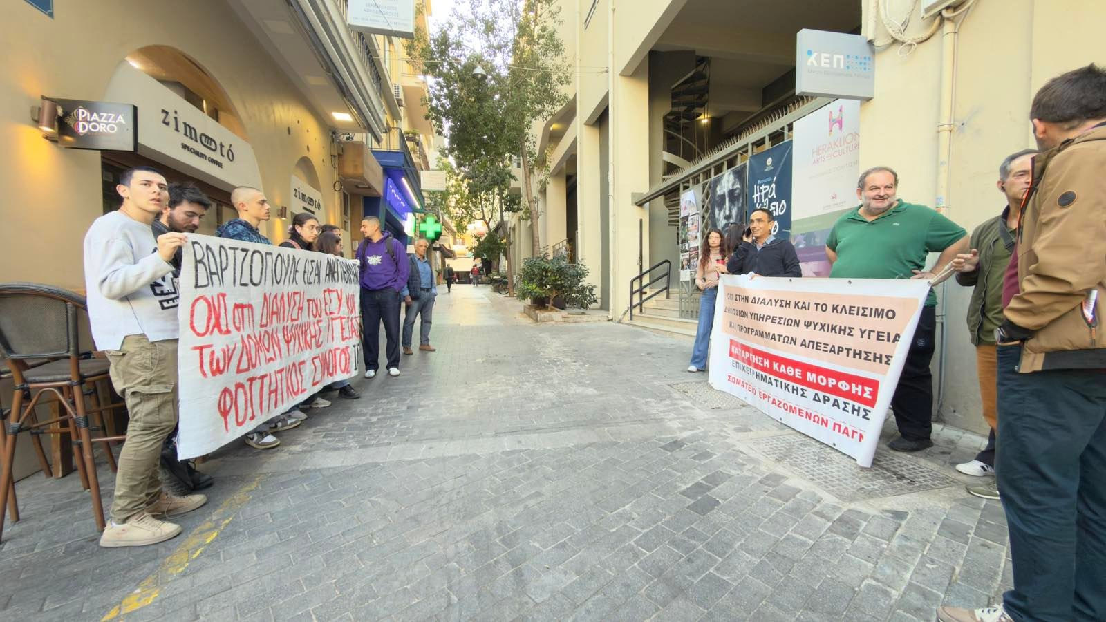 Παρ’ όλα αυτά, οι φορείς έδωσαν… ραντεβού έξω από το Πολύκεντρο και με συνθήματα διαμαρτυρήθηκαν για την κατάρρευση των δομών της ψυχικής υγείας.