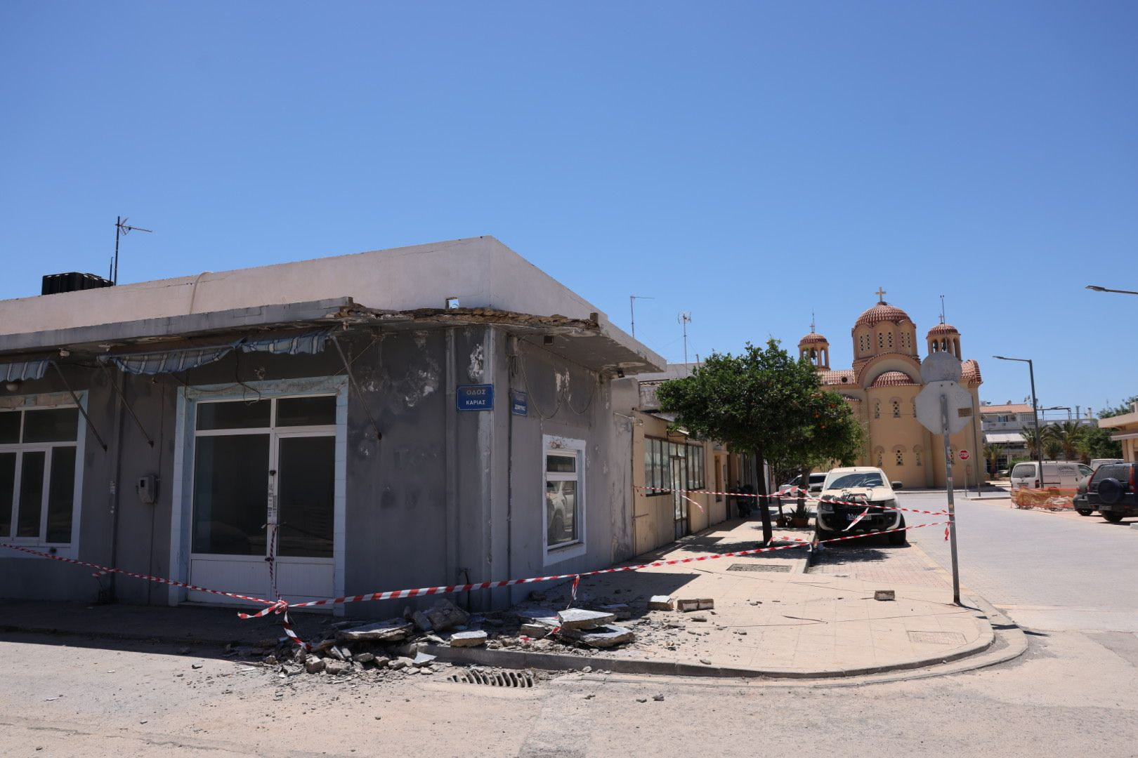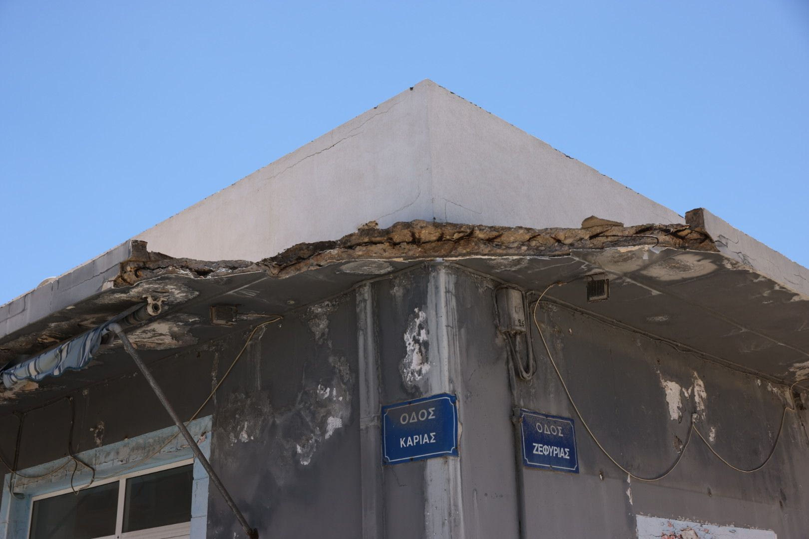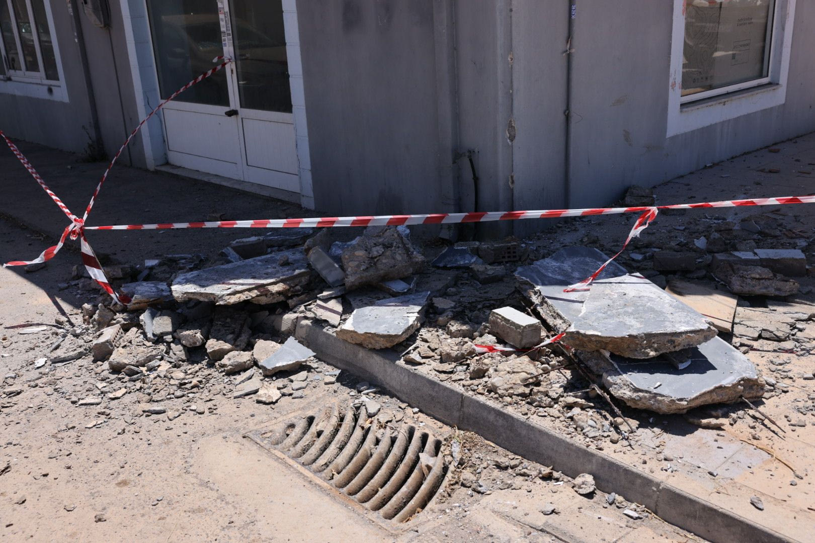 Από θαύμα δεν τραυματίστηκε κανείς καθώς τα μπετά έπεσαν στο δρόμο και μάλιστα προοκάλεσαν σημαντικές φθορές σε σταθμευμένα οχήματα.