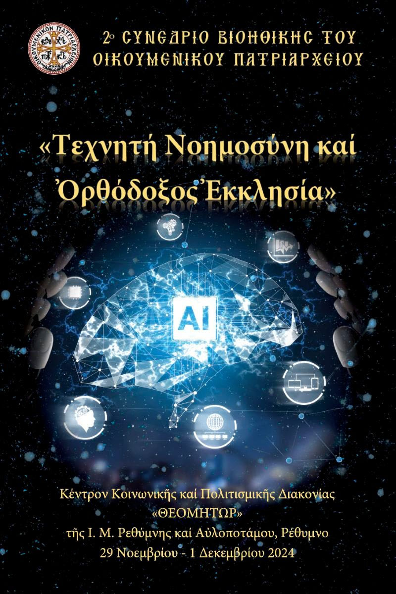 Την Παρασκευή, 29 Νοεμβρίου 2024, στο Συνεδριακό Κέντρο της Ιεράς Μητροπόλεως Ρεθύμνης και Αυλοποτάμου «ΘΕΟΜΗΤΩΡ» σε πανηγυρική ατμόσφαιρα, με την παρουσία του Εκπροσώπου της Α. Θ. Παναγιότητος του Οικουμενικού Πατριάρχου κ.κ. Βαρθολομαίου Σεβασμιωτάτου Αρχιεπισκόπου Αυστραλίας κ. Μακαρίου, του Σεβασμιωτάτου Αρχιεπισκόπου Κρήτης κ. Ευγενίου, τοῦ Σεβασμιωτάτου Ποιμενάρχου, Μητροπολίτου Ρεθύμνης και Αυλοποτάμου κ. Προδρόμου και των Σεβασμιωτάτων Μητροπολιτών Μεσογαίας και Λαυρεωτικής κ. Νικολάου και Ιεραπύτνης και Σητείας κ. Κυρίλλου, των Εντιμοτάτων Αρχόντων του τόπου, του Ελλογιμωτάτου Πρυτάνεως του Πανεπιστημίου Κρήτης, ακαδημαϊκών και πολυπληθούς ακροατηρίου, ξεκίνησαν οι εργασίες του 2ου Συνεδρίου Βιοηθικής του Οικουμενικού Πατριαρχείου, με θέμα «Τεχνητή Νοημοσύνη και Ορθόδοξος Εκκλησία».