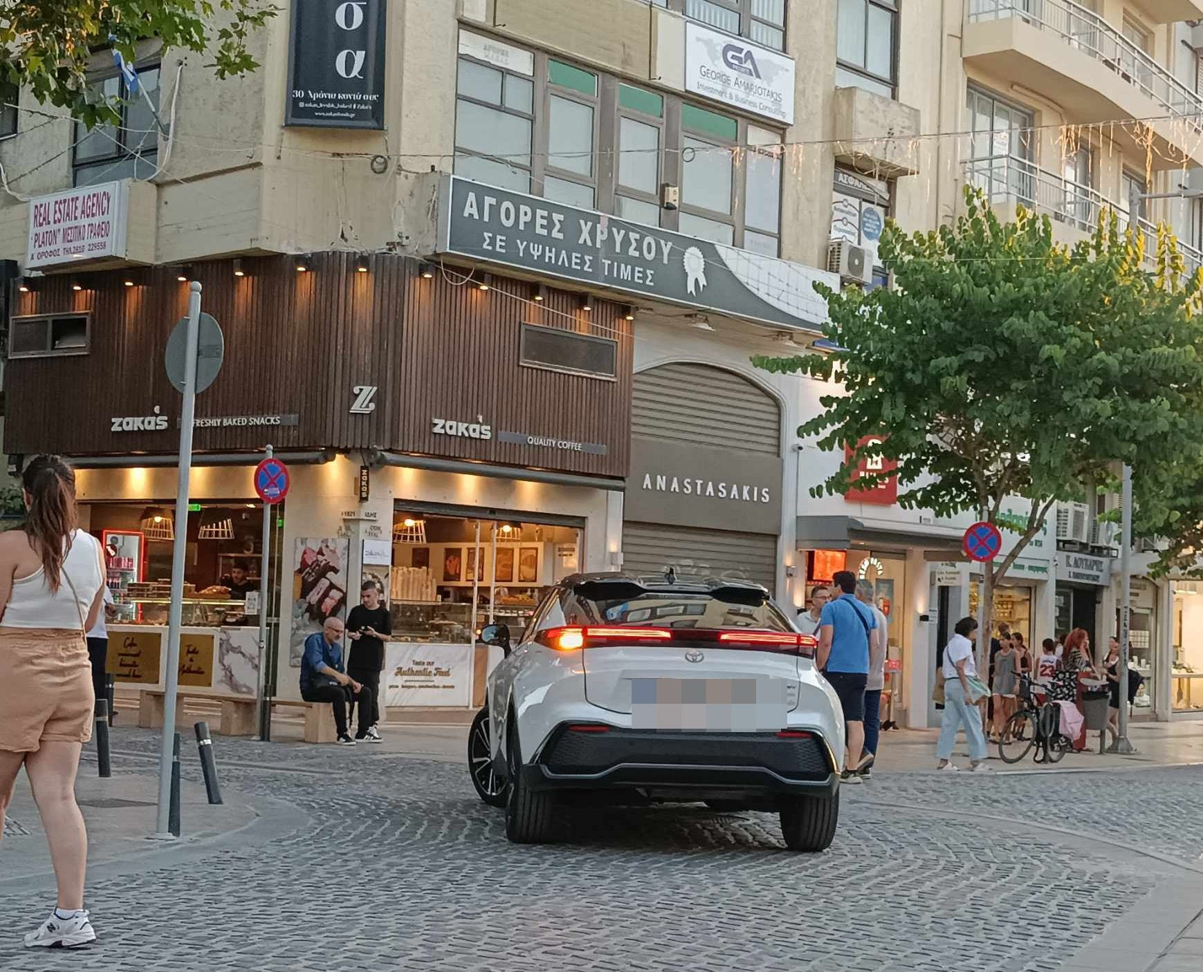 Kαι κάπου εκεί στο πεζόδρομο και ένα αυτοκίνητο με ένα καμαρωτό οδηγό κάνει τη βόλτα του περνώντας μέσα από τους πεζούς.
