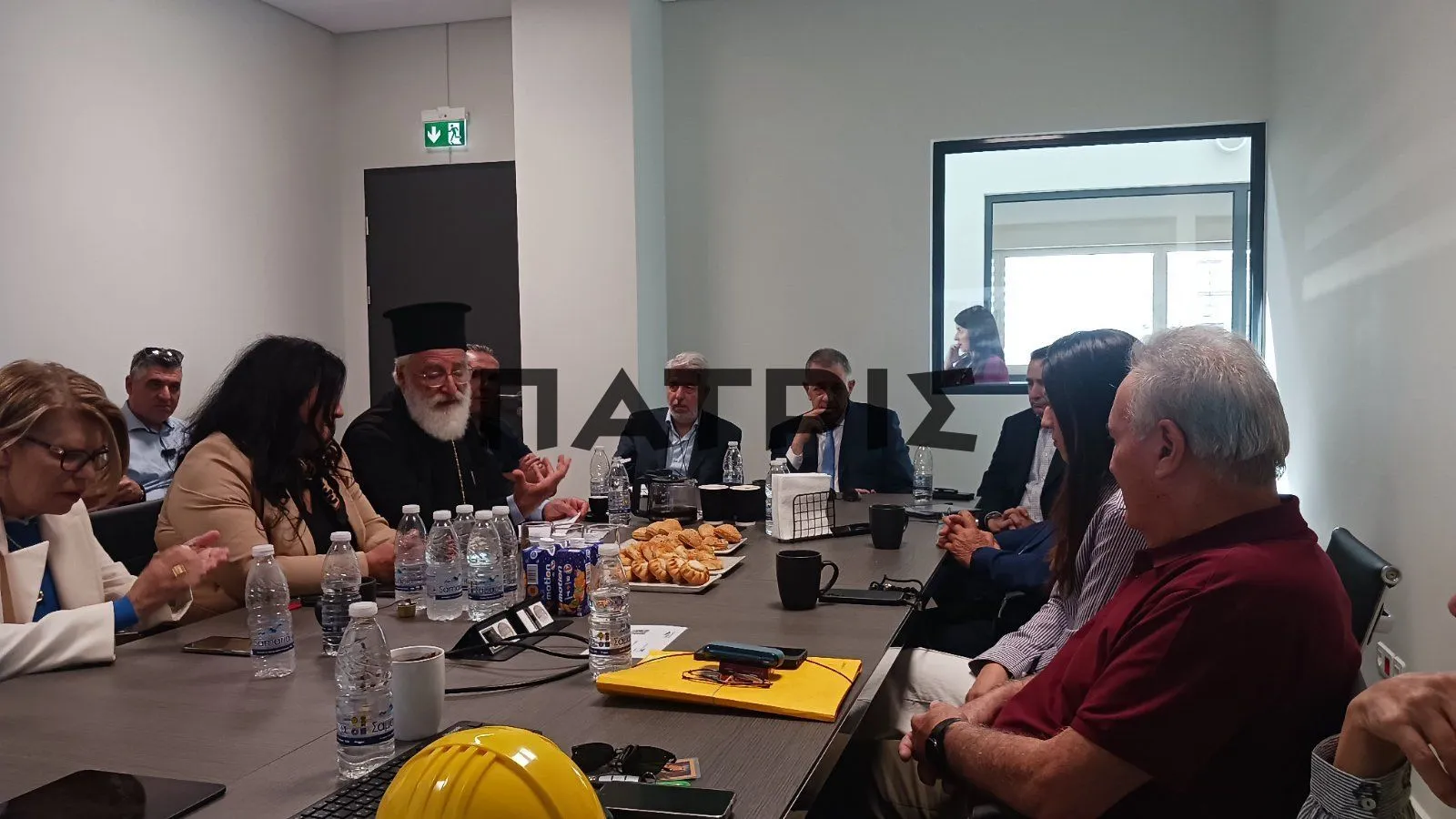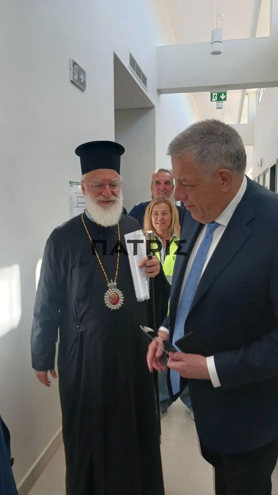Στο εργοτάξιο βρίσκεται και ο Μητροπολίτης Αρκαλοχωρίου, Βιάννου και Καστελλίου, κ. Ανδρέας, ο οποίος υποδέχθηκε τον Υφυπουργό.