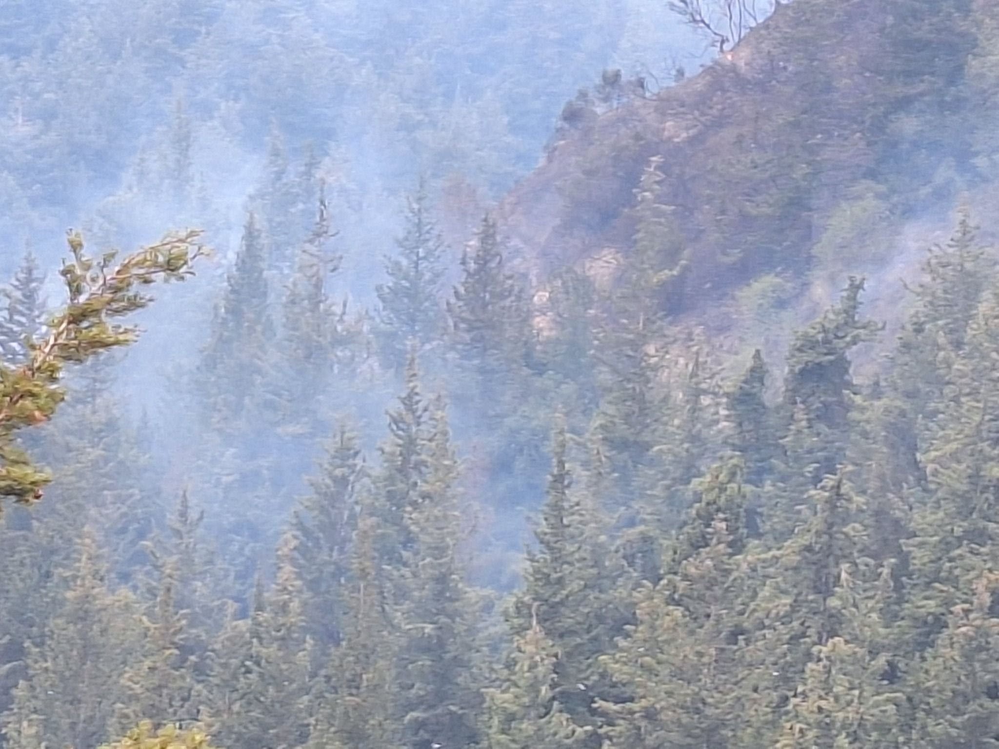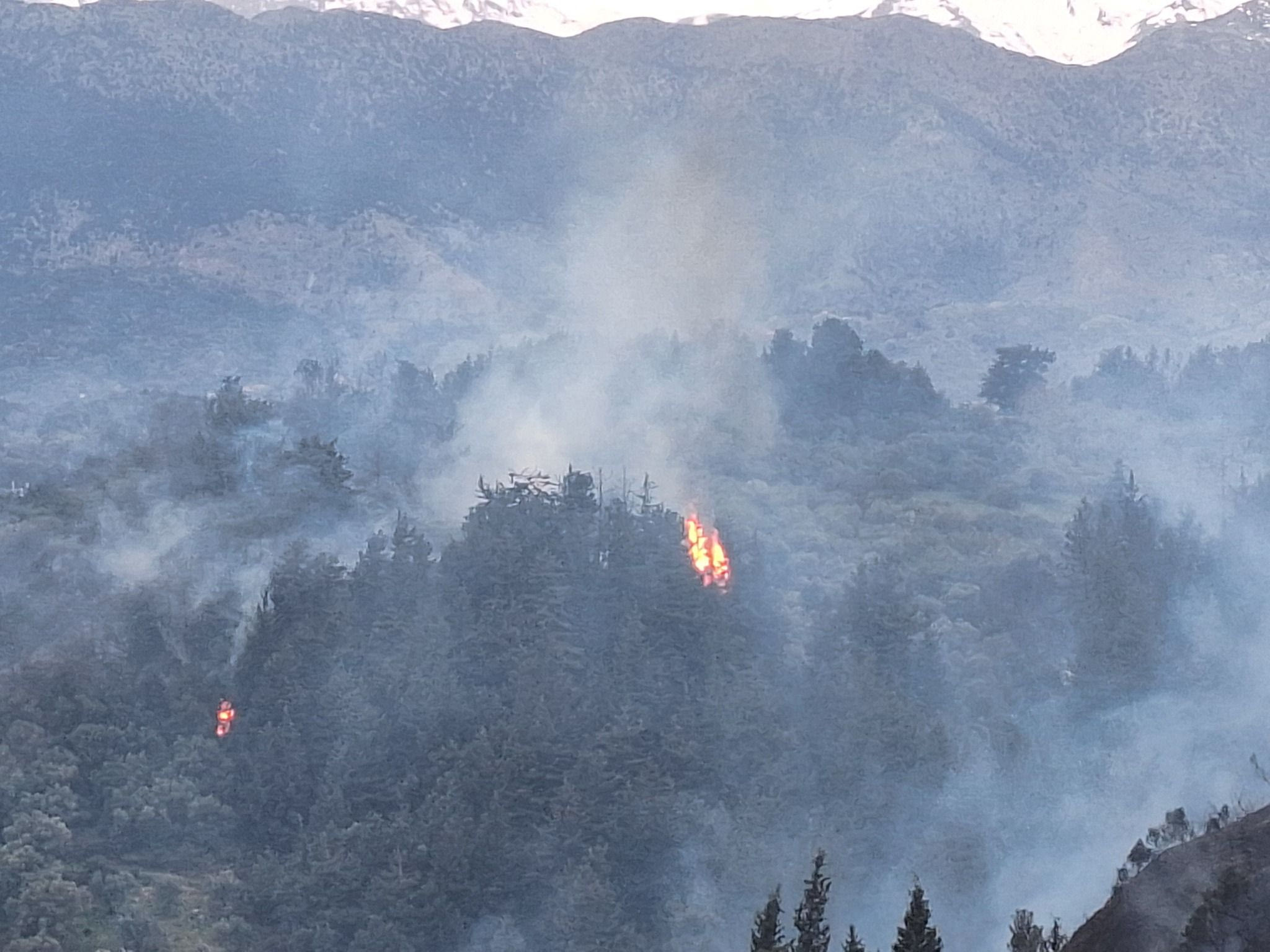 Στην περιοχή πνέουν δυνατοί άνεμοι που δυσκολεύουν το έργο κατάσβεσης της πυρκαγιάς.