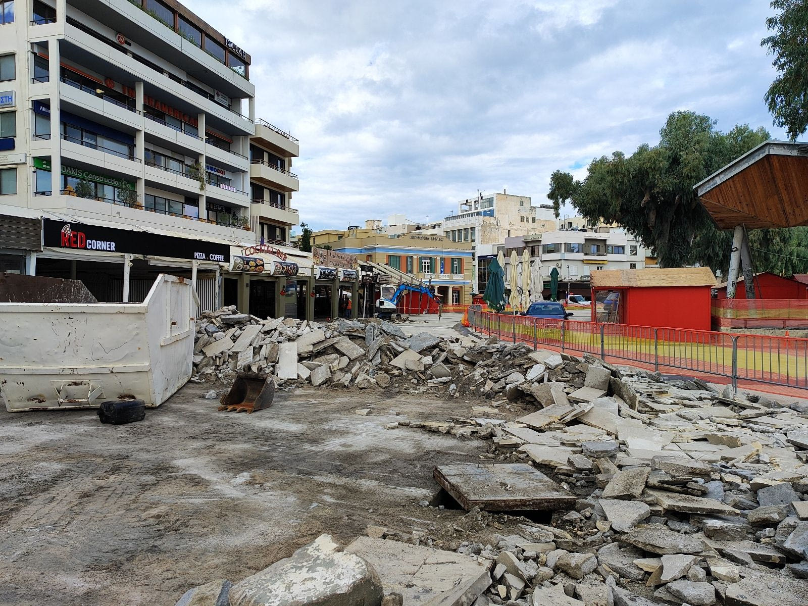 Ξεκίνησαν την Τρίτη οι εργασίες στην Πλατεία Ελευθερίας στο πλαίσιο του έργου ανάπλασης της κεντρικής πλατείας του Ηρακλείου.