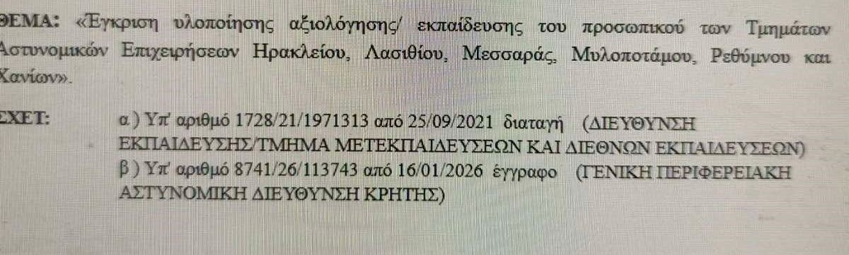 Σύμφωνα με πληροφορίες του patris.gr, από προχθές, Δευτέρα, περίπου 20 αστυνομικοί του ΤΑΕ Μυλοποτάμου συμμετέχουν σε πρόγραμμα εκπαίδευσης που πραγματοποιείται σε χώρο ο οποίος έχει διατεθεί από την οικεία Διεύθυνση Αστυνομίας. Οι ίδιες πηγές αναφέρουν ότι πρόκειται για ιδιαίτερα απαιτητική διαδικασία, η οποία σε αυτή τη φάση διαρκεί τουλάχιστον έξι ημέρες και θα ακολουθηθεί από σχετική αξιολόγηση των συμμετεχόντων.