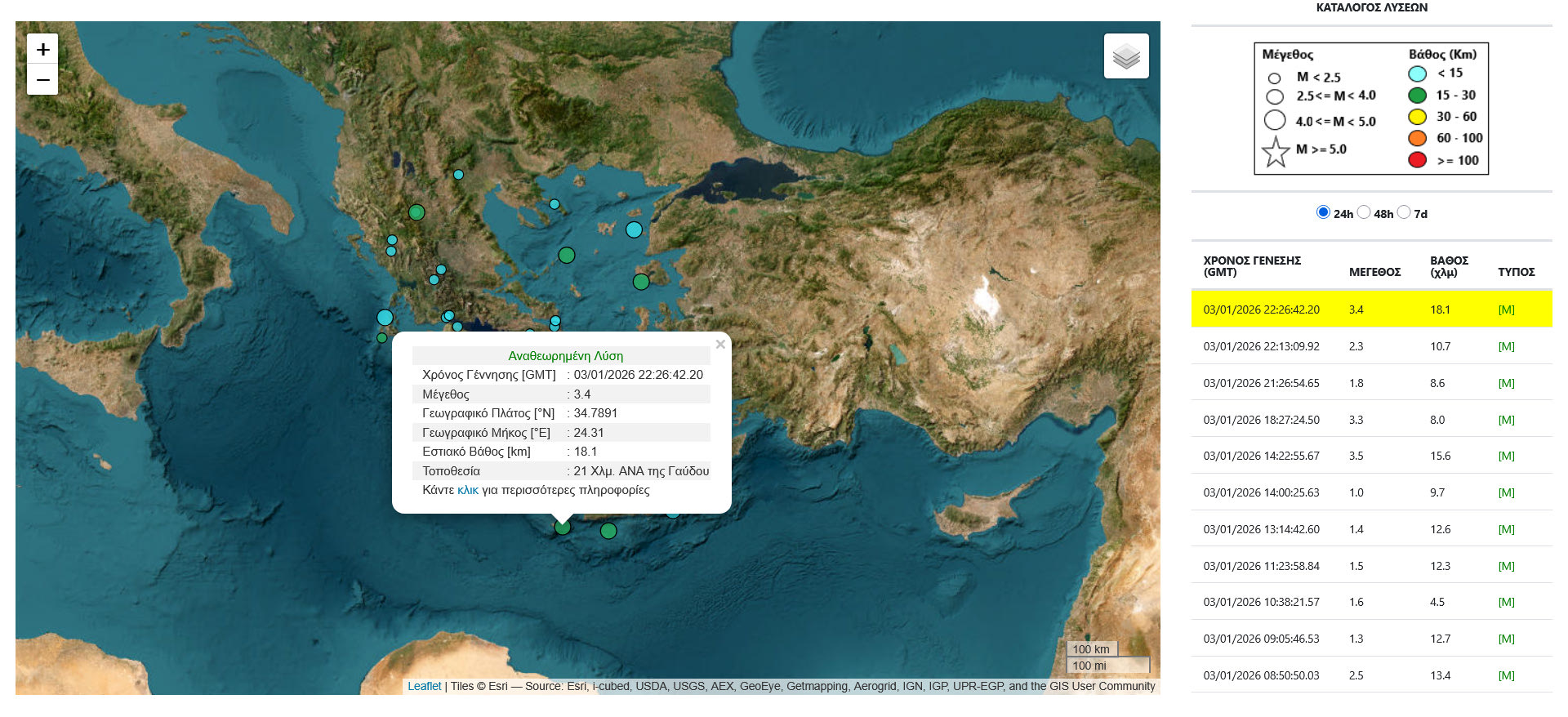 Σύμφωνα με το Γεωδυναμικό Ινστιτούτο Αθηνών το επίκεντρο του σεισμού εντοπίζεται στη θαλάσσια περιοχή, 21 χιλιόμετρα ανατολικά-νοτιοανατολικά της Γαύδου, με το εστιακό βάθος να υπολογίζεται στα 18,1 χιλιόμετρα.