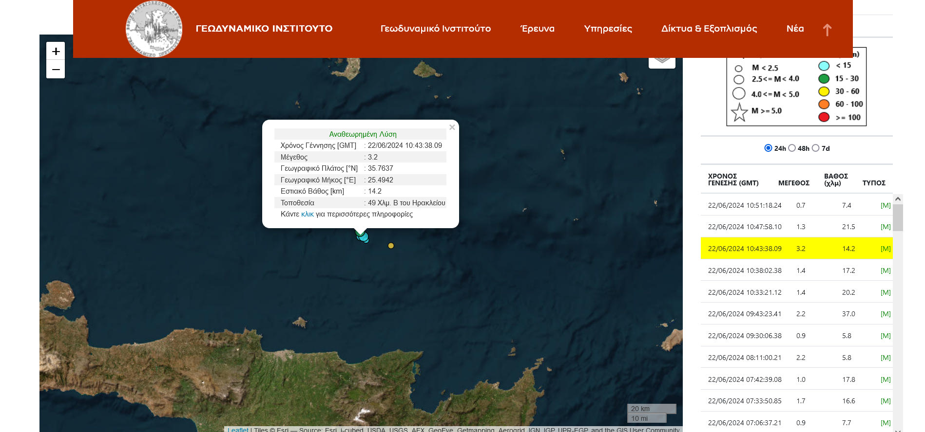 Το επίκεντρο καταγράφηκε σε θαλάσσιο χώρο 49 χλμ βόρεια του Ηρακλείου, με εστιακό βάθος στα 14,2 χλμ