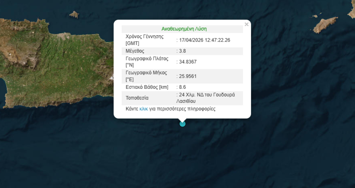 Το επίκεντρο του σεισμού ήταν 24 χιλιόμετρα νοτιοδυτικά του Γουδουρά Λασιθίου