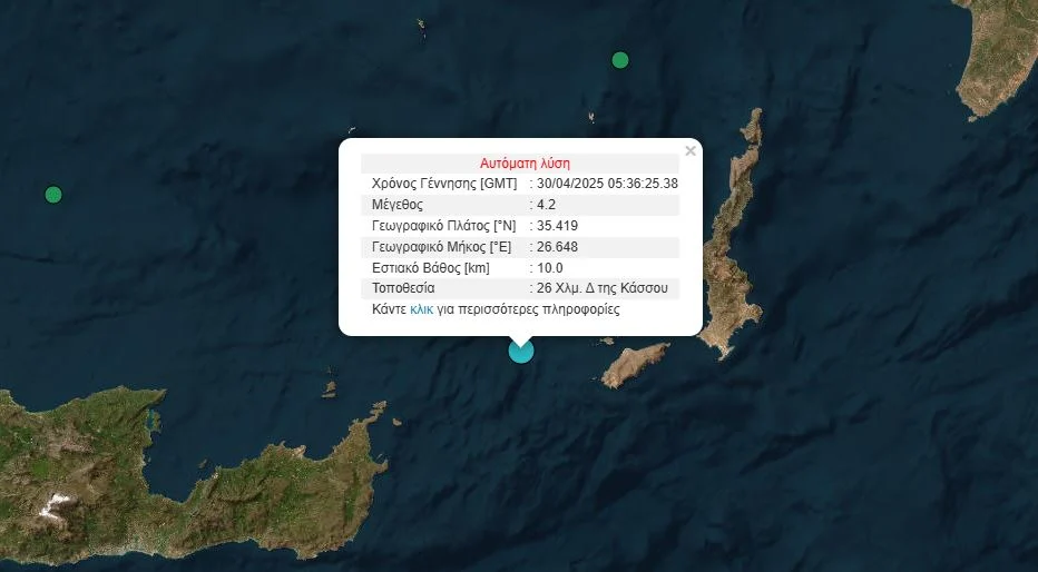 Σεισμός έγινε πριν από λίγα λεπτά στα ανοιχτά της Κάσου.