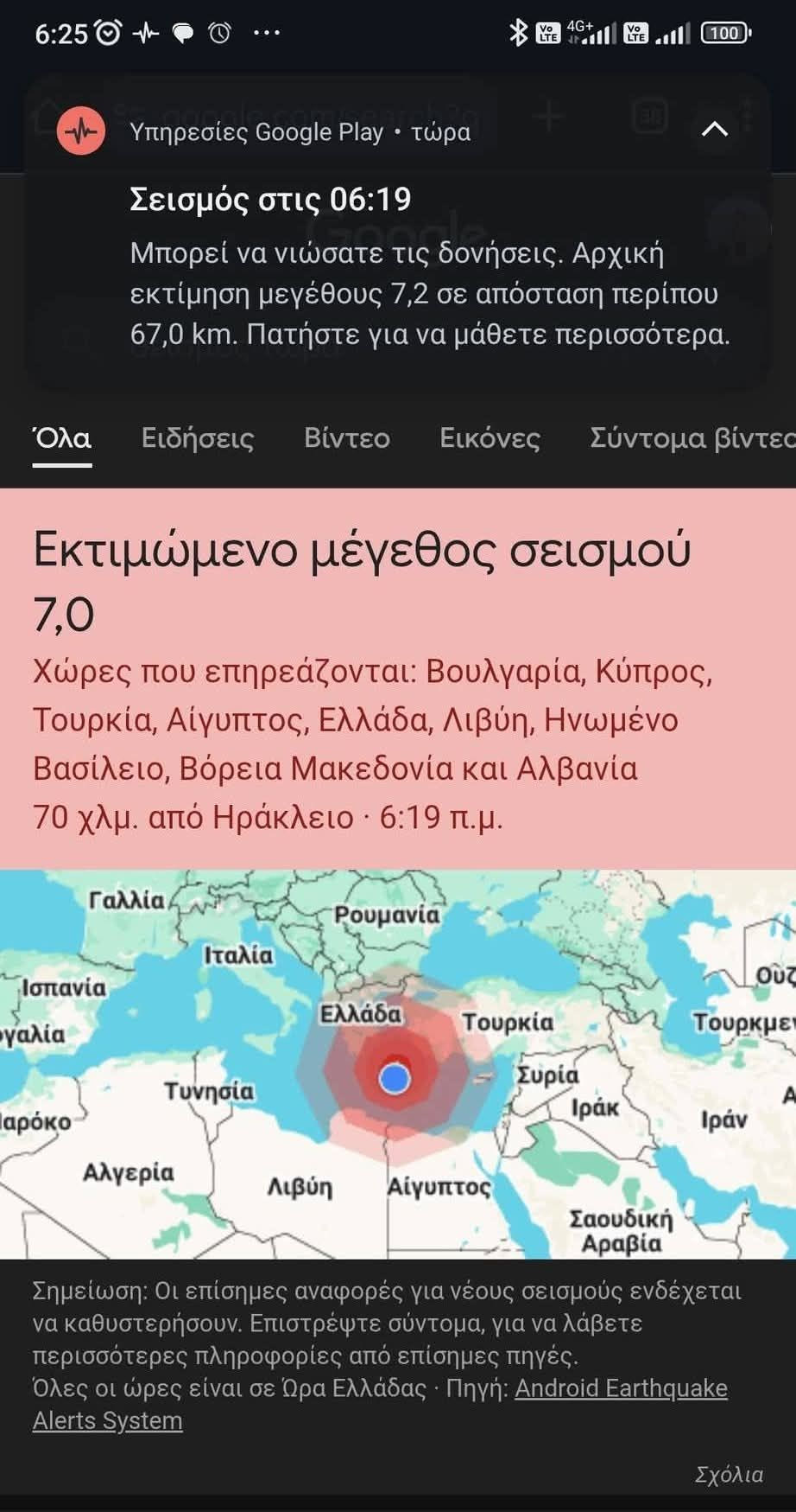 Τα ξημερώματα της Πέμπτης που η Κρήτη ταρακουνήθηκε από τον Εγκέλαδο και μέχρι να ανακοινωθεί το ακριβές μέγεθος της ισχυρότατης δόνησης (6,1), υπήρξε σύγχυση και ανησυχία σε πολύ κόσμο από την ειδοποίηση που είχε στα κινητά του και ανέφερε για μέγεθος 7.2 της κλίμακας Ρίχτερ.