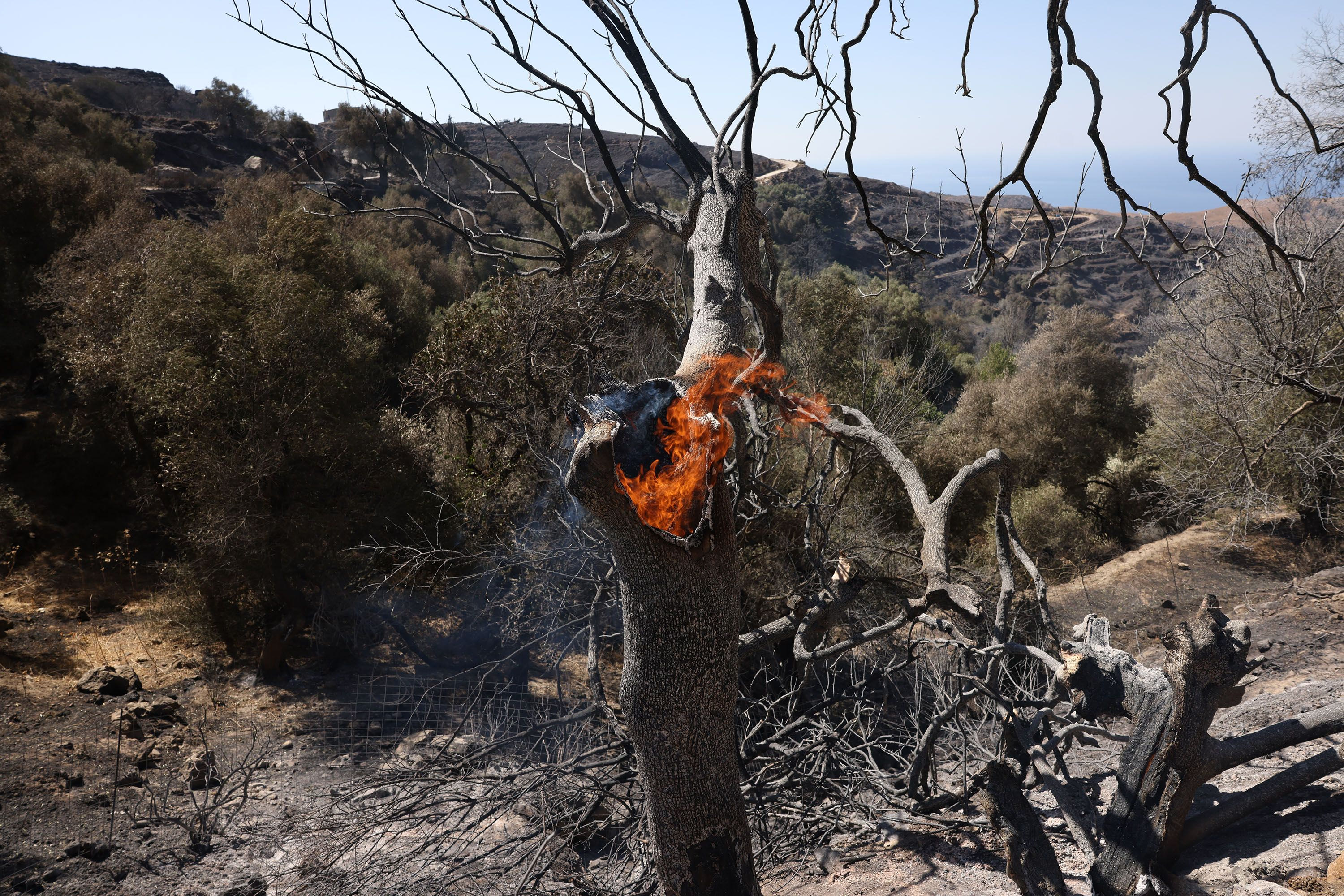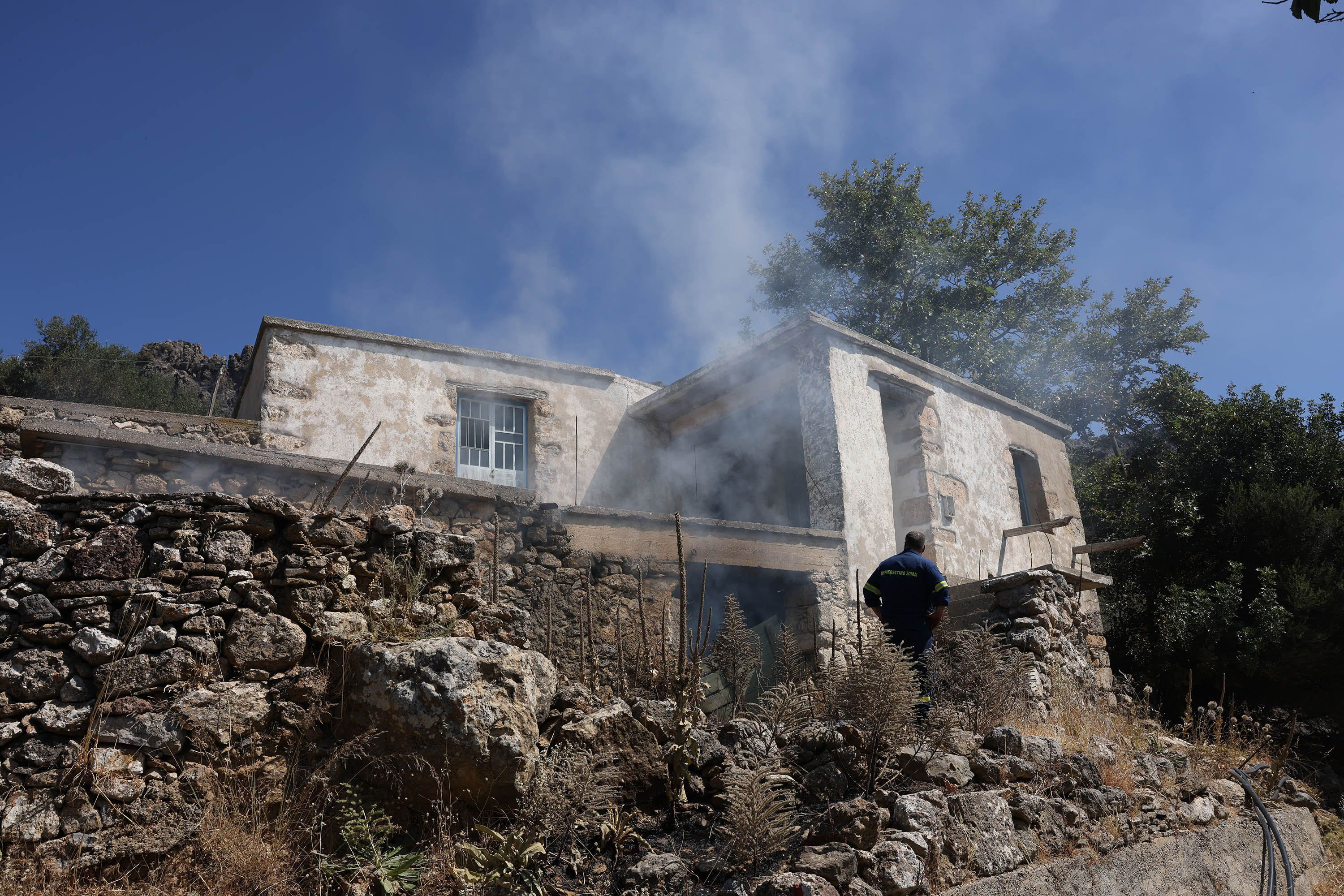 Σύμφωνα με τον συντονιστή Βορείου-Νοτίου Αιγαίου και Κρήτης, στην Πυροσβεστική, Κωνσταντίνος Ψαρρός, η φωτιά είχε δύο εστίες και έκαψε πάνω από 7.000 στρέμματα γεωργικής γης. Τρία σπίτια καταστράφηκαν, τα περισσότερα ήταν ακατοίκητα, ενώ τέσσερα αυτοκίνητα κάηκαν ολοσχερώς. Δεν είναι ακόμα γνωστό αν ανήκαν σε ιδιοκτήτες ή ήταν εγκαταλελειμμένα.