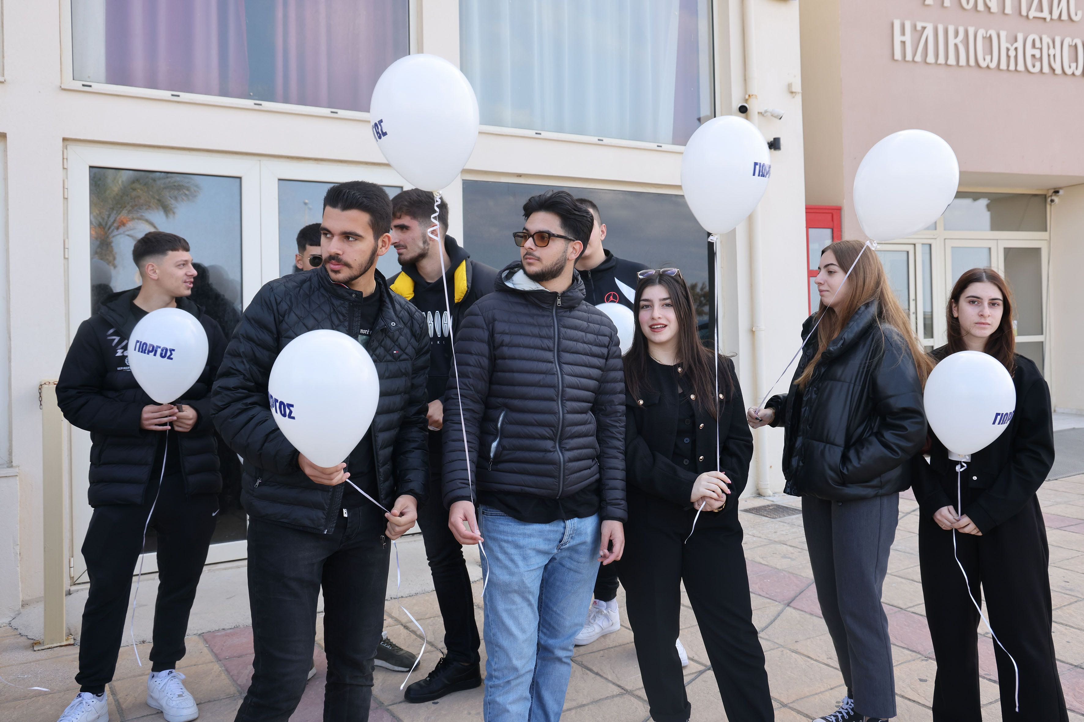 Κρατώντας λευκά μπαλόνια, τίμησαν το παιδί τους, τον φίλο τους σε μια συγκινητική στιγμή.