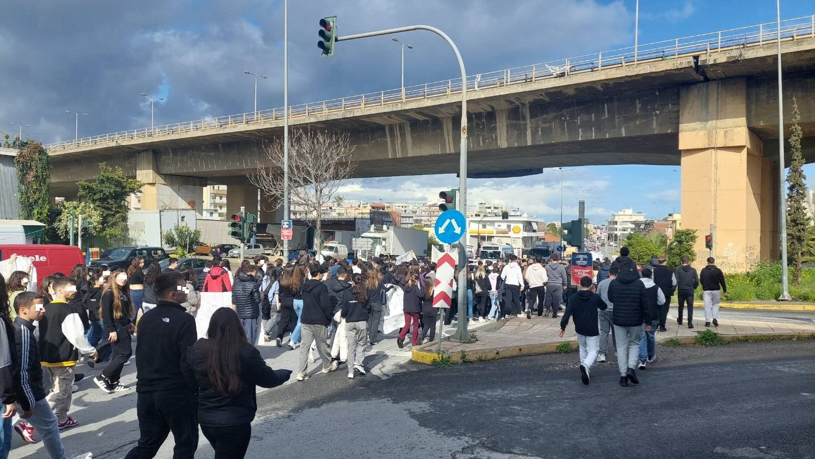 Μαθητές από τα σχολεία της πόλης δίνουν ραντεβού στο προαύλιο και όλοι μαζί σα μία γροθιά κατεβαίνουν στην πλατεία Ελευθερίας κρατώντας πανό.